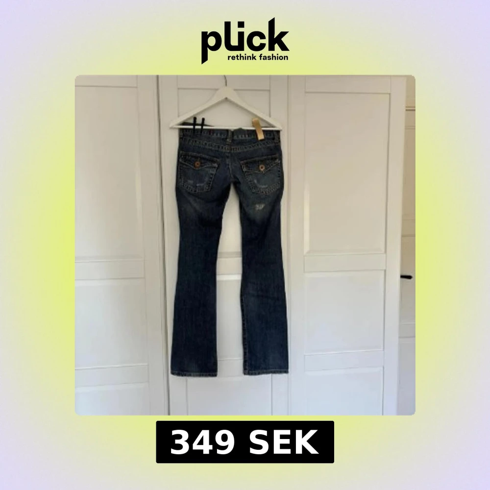 As snygga lågmidjade utsvängda jeans! Passar bra till allt! De är originellt köpta för 799kr. Märket är Hollywood! 38 midjemått tvärs över, 78 innerbenslängd!❤️