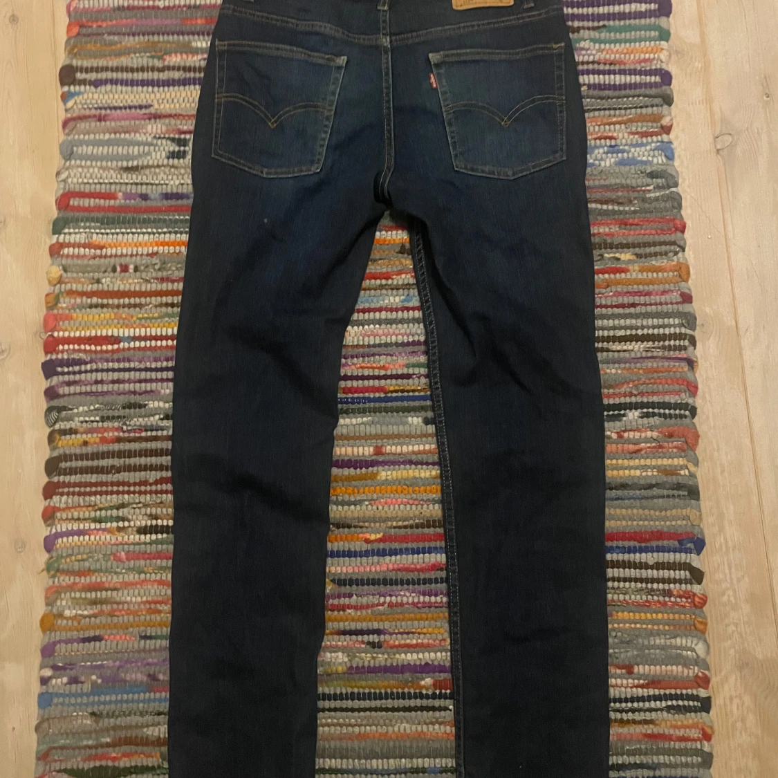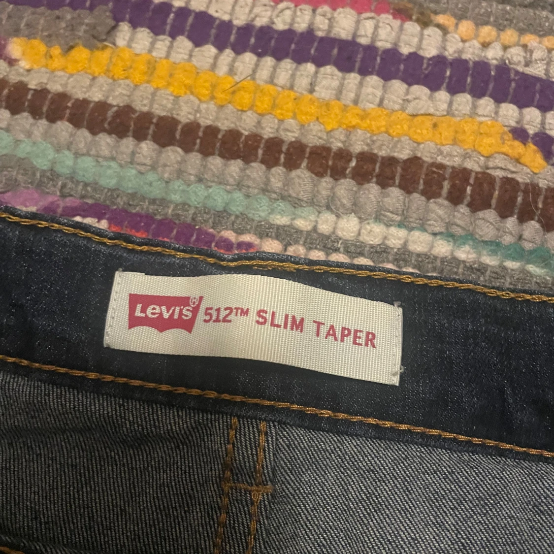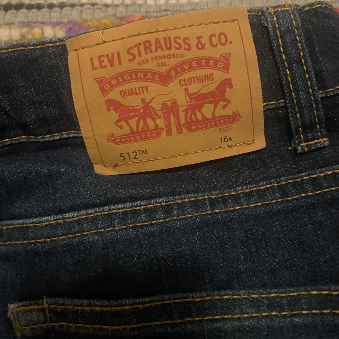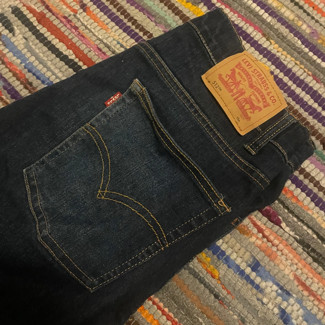 Storlek 16A i junior vilket motsvarar W28/L30 Mörkblå Levi's 512 Slim Taper jeans med klassiska gula sömmar och femficksdesign. Jeansen har en smal passform med avsmalnande ben och är tillverkade i slitstarkt denim. Perfekta för dig som gillar en modern och stilren look.