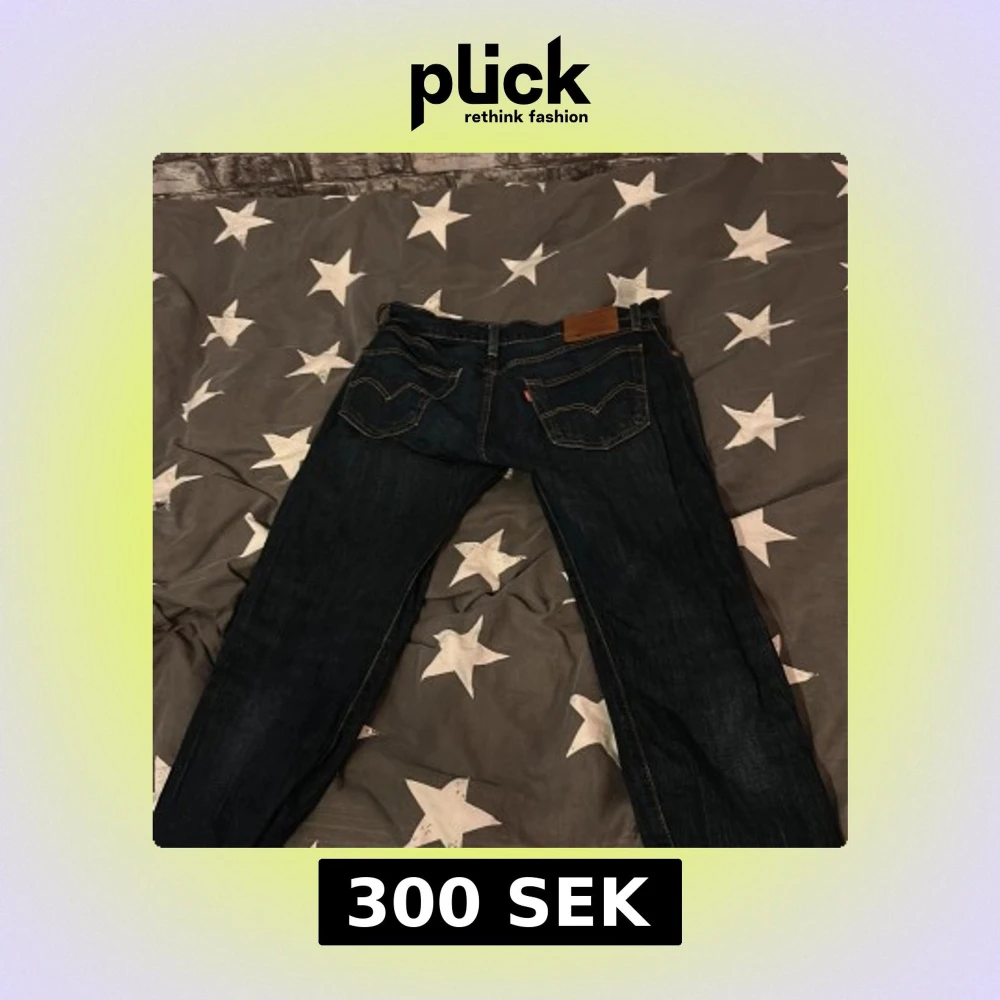 Säljer ett par mörkblå Levi's 502 jeans med klassisk femficksdesign och snygga kontrastsömmar. Byxorna har normal passform och är tillverkade i slitstarkt denim. Perfekta för dig som gillar en tidlös jeansstil.