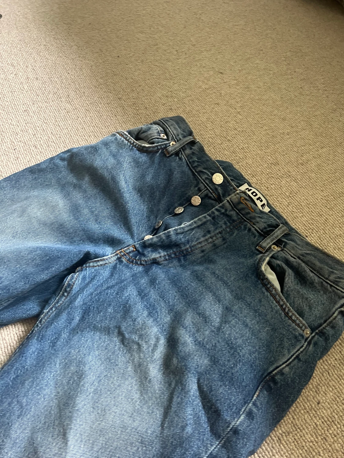Bra skick, förutom litet svart märke på benet samt lite slitning. Storlek 30.