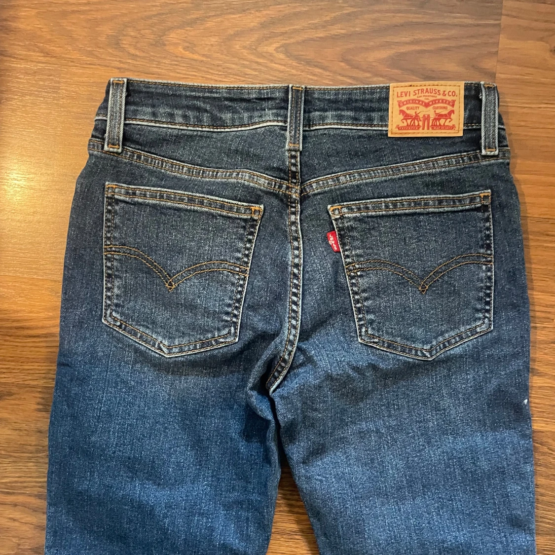 Levis jeans i mörkblå tvätt med låg midja, vida ben och fem fickor. Byxorna har knappgylf och tydliga kontrastsömmar. Perfekta för dig som gillar tidlös denimstil.