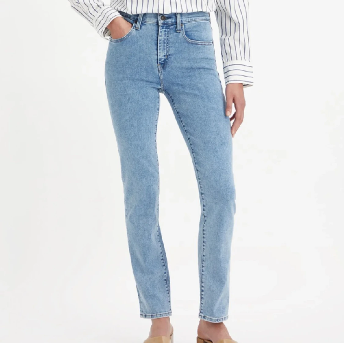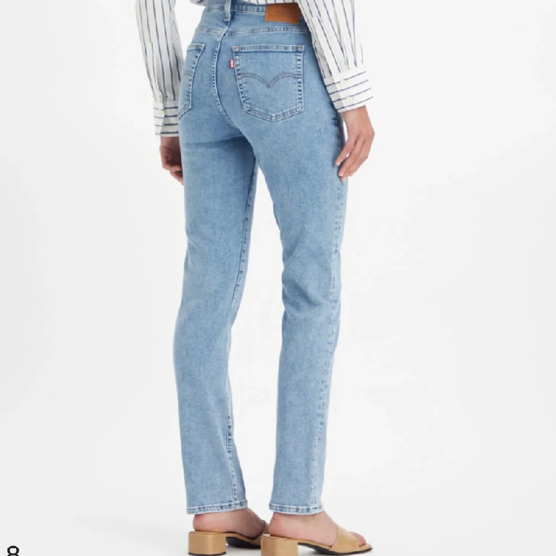 Superfina Levis byxor köpta i Italien. Storlek 28. Knappt använd. Byxan är ljusblå. Modell Levi’s 724 High rise slim straight. Nypris 1300kr