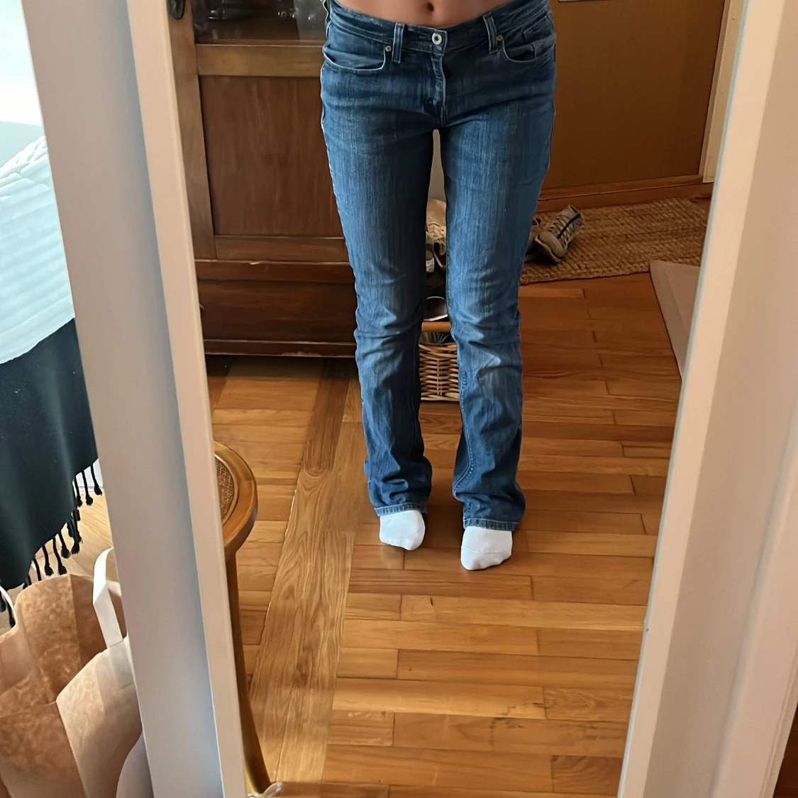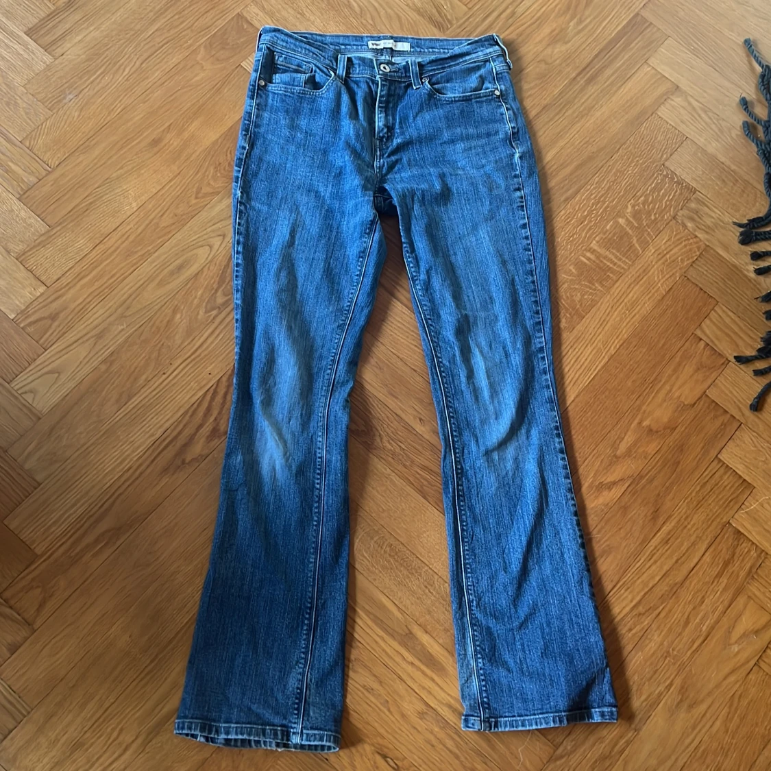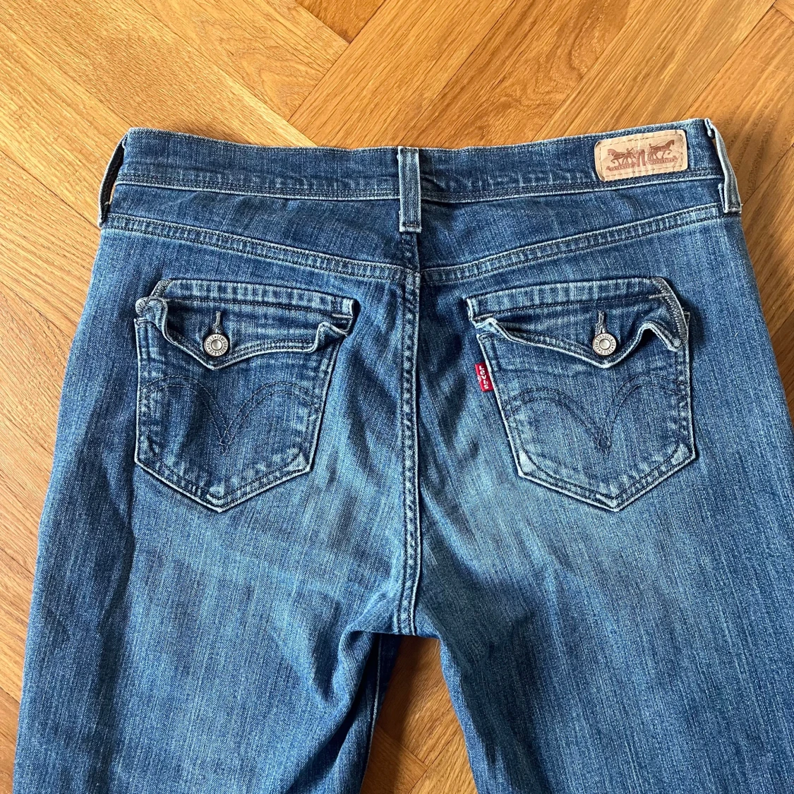 Levis jeans 515 bootcut. De är i bra skick men liiite slitna längst ned vid fötterna. Hittar inte stolek men passar S/M skulle jag säga. Jag är 167cm som referens. Midjemått 39cm, innerbenslängd 80cm. Hör gärna av er med frågor!