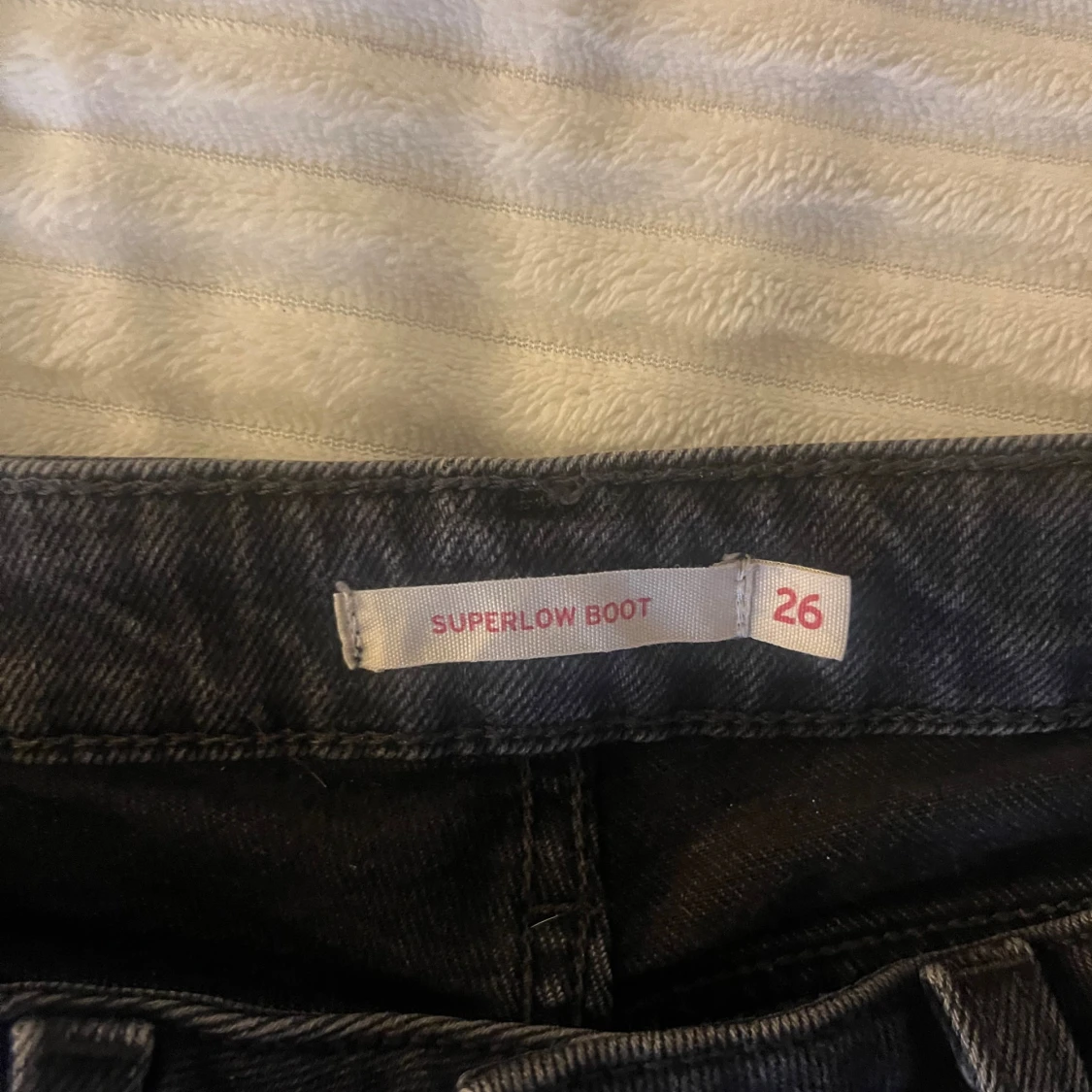 Säljer dessa då de ej kommer till användning i väldigt bra skick de är uppsprättade längst ner för att va lite längre innerbenslängd: 78 cm midjemått 34 cm. De är storlek 26 men dom är stretchiga