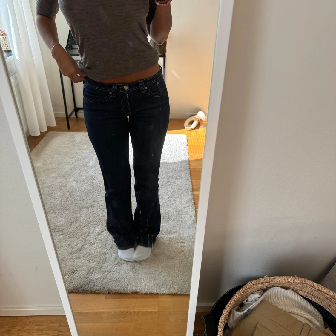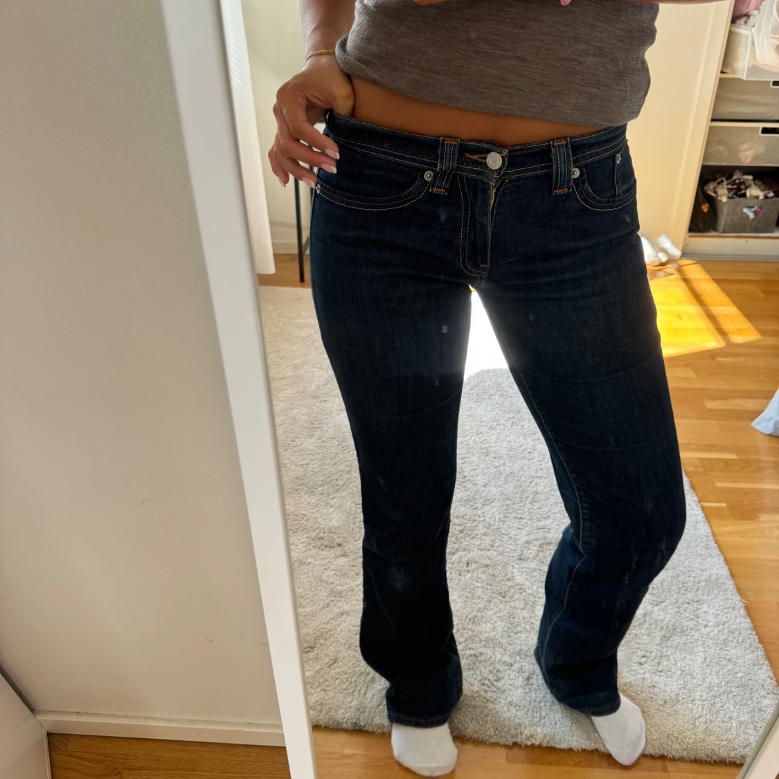 dödssnygga jeans i en så najs höstlig färg😍de är verkligen dem perfekta jeansen som är så snyggt utsvängda😍passar mig som brukar ha stl 36 och jeansen är långa på mig som är 164 cm❤️