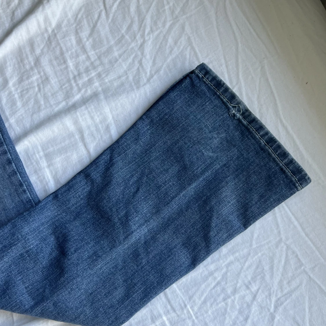 Lowwaist straight/flare jeans. Helt oanvända. Mista lilla defekt vid foten av byxan. 🥰 ljusblåa i verkligheten Det passar någon som är 175cm.