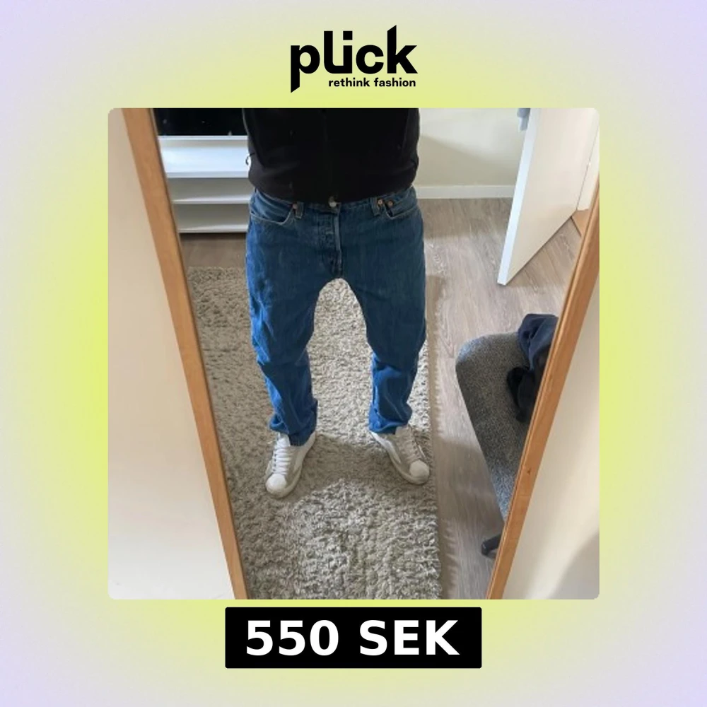 Säljer ett par schyssta blå Levis 501 jeans. De har normal passform och är i storlek W33 L32. Perfekta för en avslappnad stil. Modellen på bilden är 183cm. Pris kan diskuteras