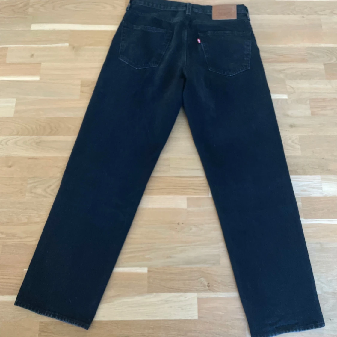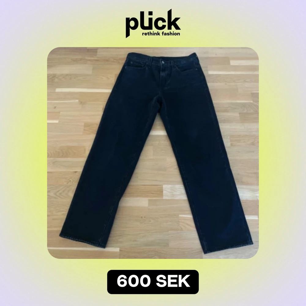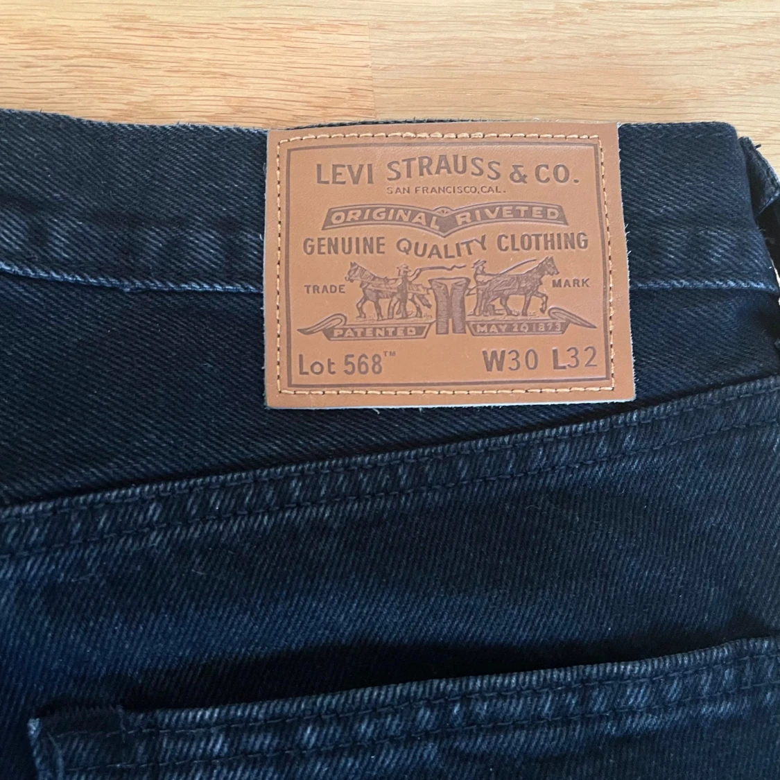 Sjukt eftertraktade jeans ifrån Levi’s. Ett par 568 i färgen svart. Passformen är loosefit. Använt endast 3 gånger så i väldigt bra skick! Nypris: ca 1200kr Storlek: 30/32