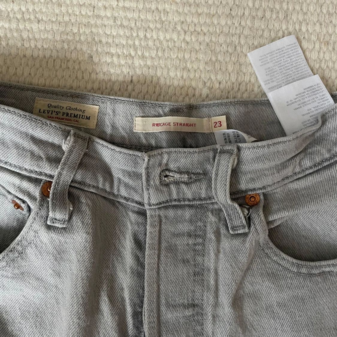 Säljer ett par gråa Ribcage straight jeans i storlek W23 längd 29. Knappt använda!