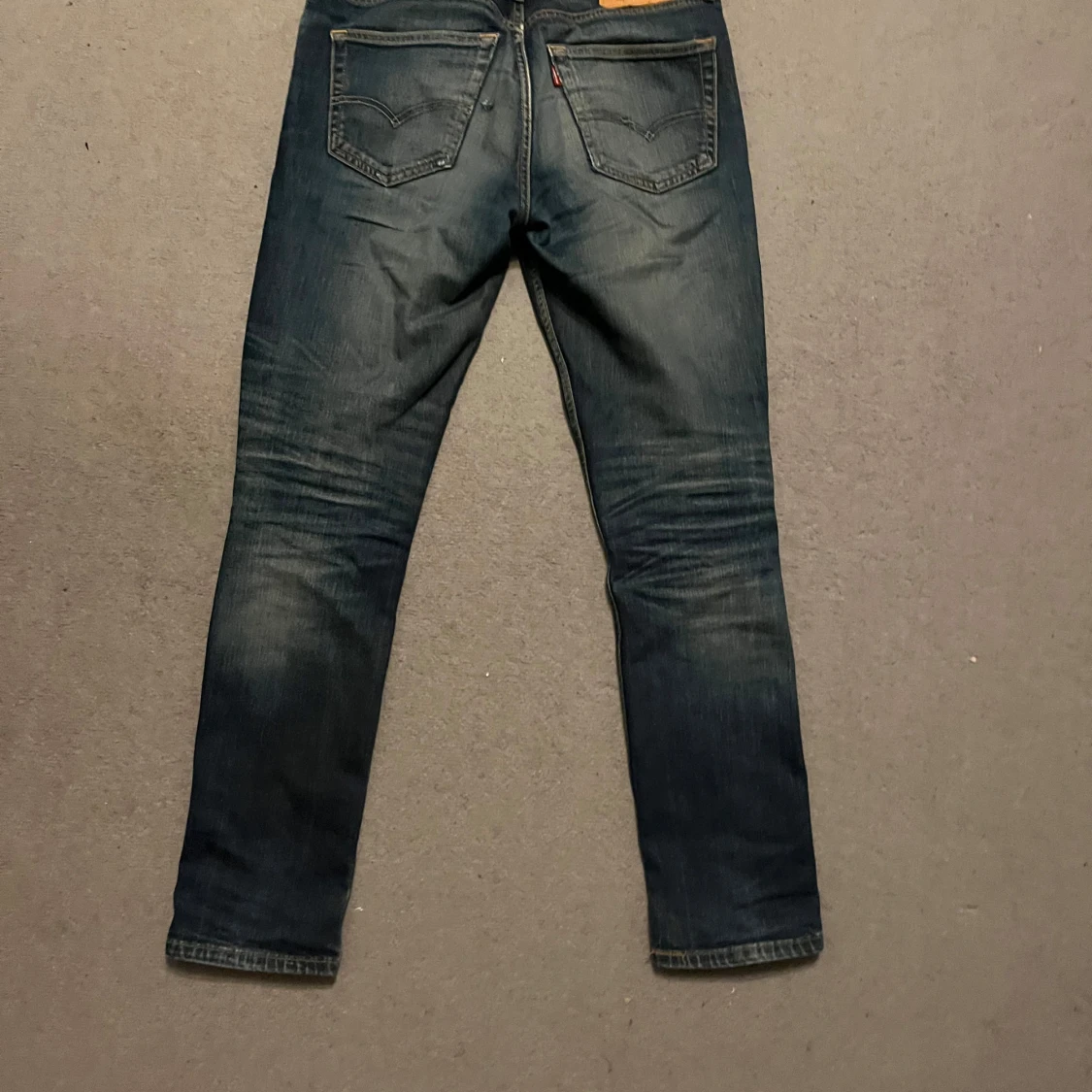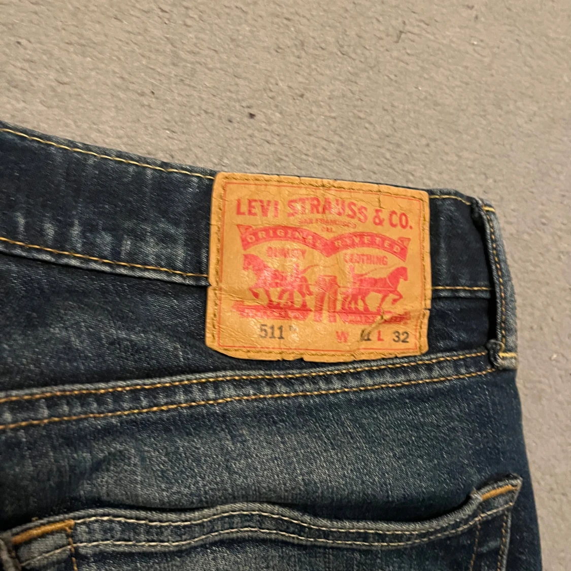 Säljer ett par klassiska Levi's 511 jeans i en snygg blå tvätt. De har en slim passform och är tillverkade i slitstarkt denim. Perfekta för en avslappnad stil med en touch av vintagekänsla.
