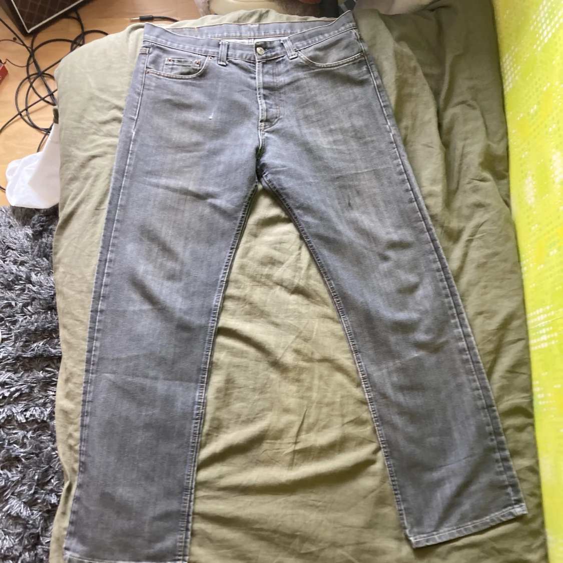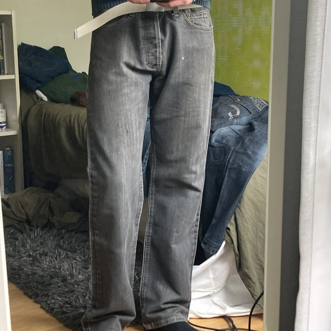 Gråa Vintage Levis Jeans, sitter jättefint, jättebra kvalité Skick: bra skick men lite defekt, se bild