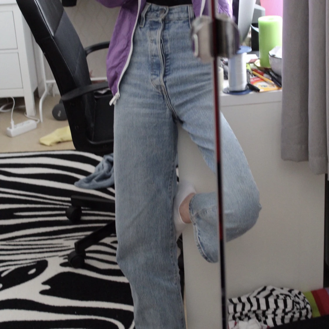 Levi’s Jeans, Ribcage Straight. Storlek 25/28. Har använts en del, slitet runt nedsidan av benet, kan skicka bättre bilder.