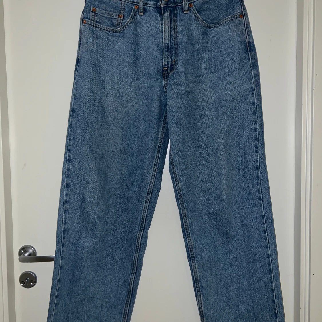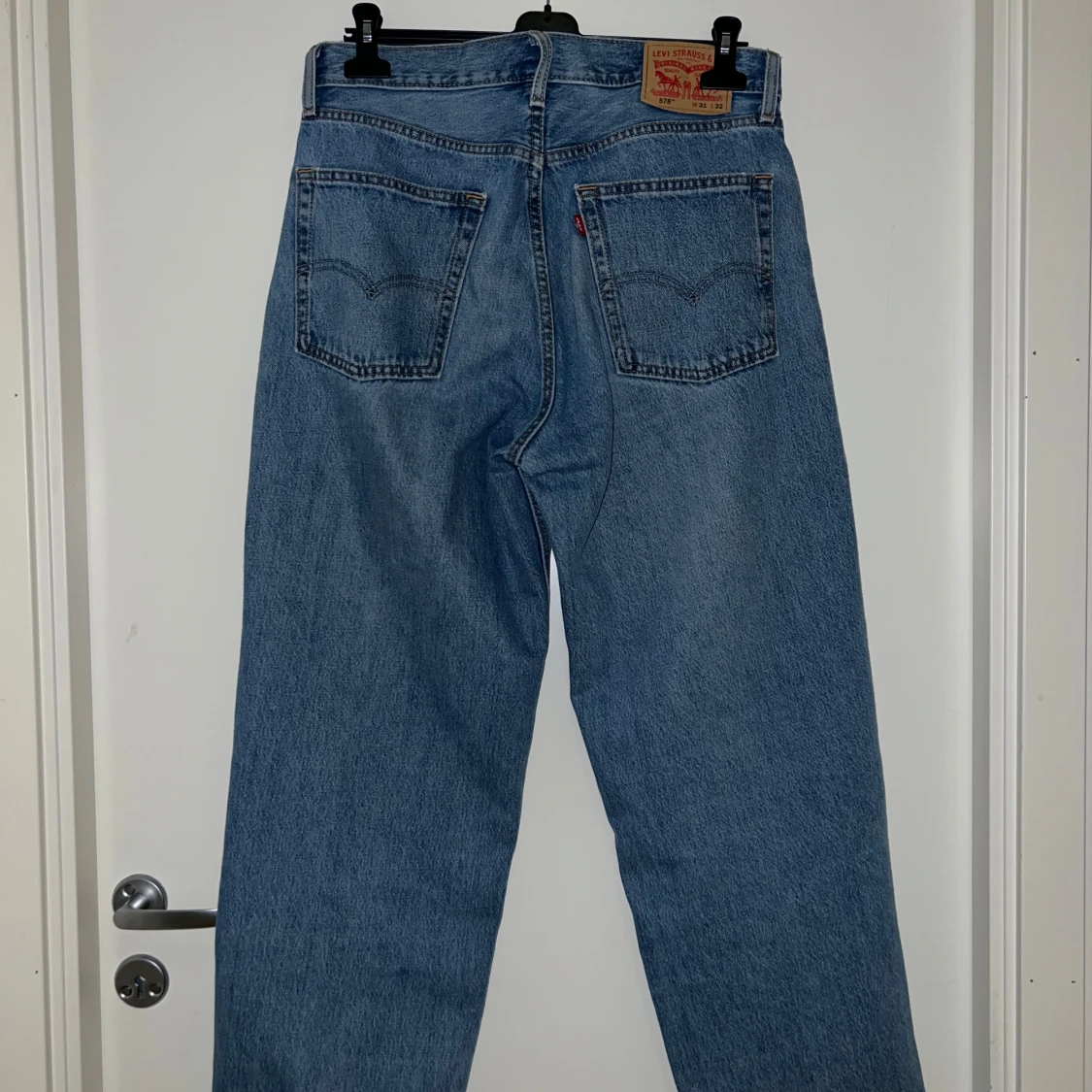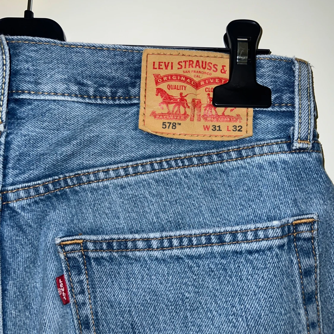 Blåa baggy Levis Jeans 578 från Zalando. Dem är använda ganska mycket och har därför lite slitage vid hälarna, se sista bild. 43 cm i midjan och 73 cm lång från byxgrenen. Storleken är W31 och L32. Säljer byxorna för att jag inte använder dem längre