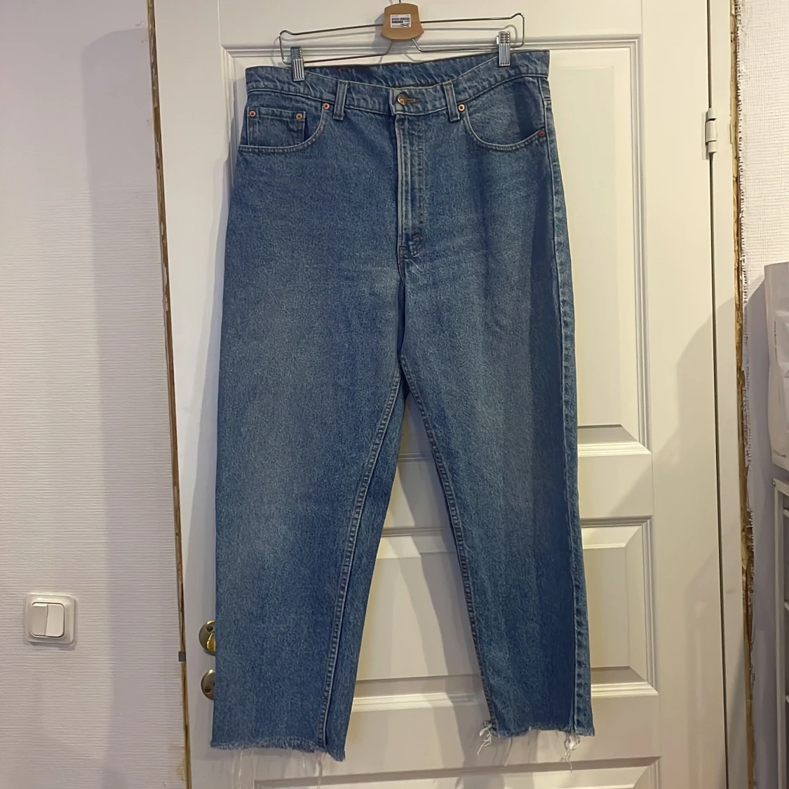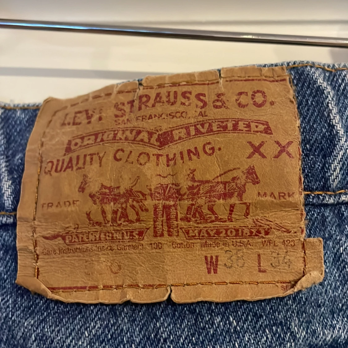 Nästan helt nya jeans som jag haft i garderoben. De är för stora så jag har inte använt de men jag har provat på jeansen. Ingen skada eller något på jeansen. Lite baggy stil och jättesköna! Fler frågor? Skriv till mig så svarar jag snabbt😊