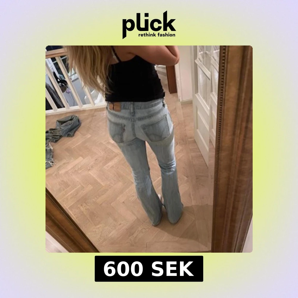 Lågmidjade ljusblå bootcutjeans, har en liten spricka där bak (sista bilden), syns inte på dock