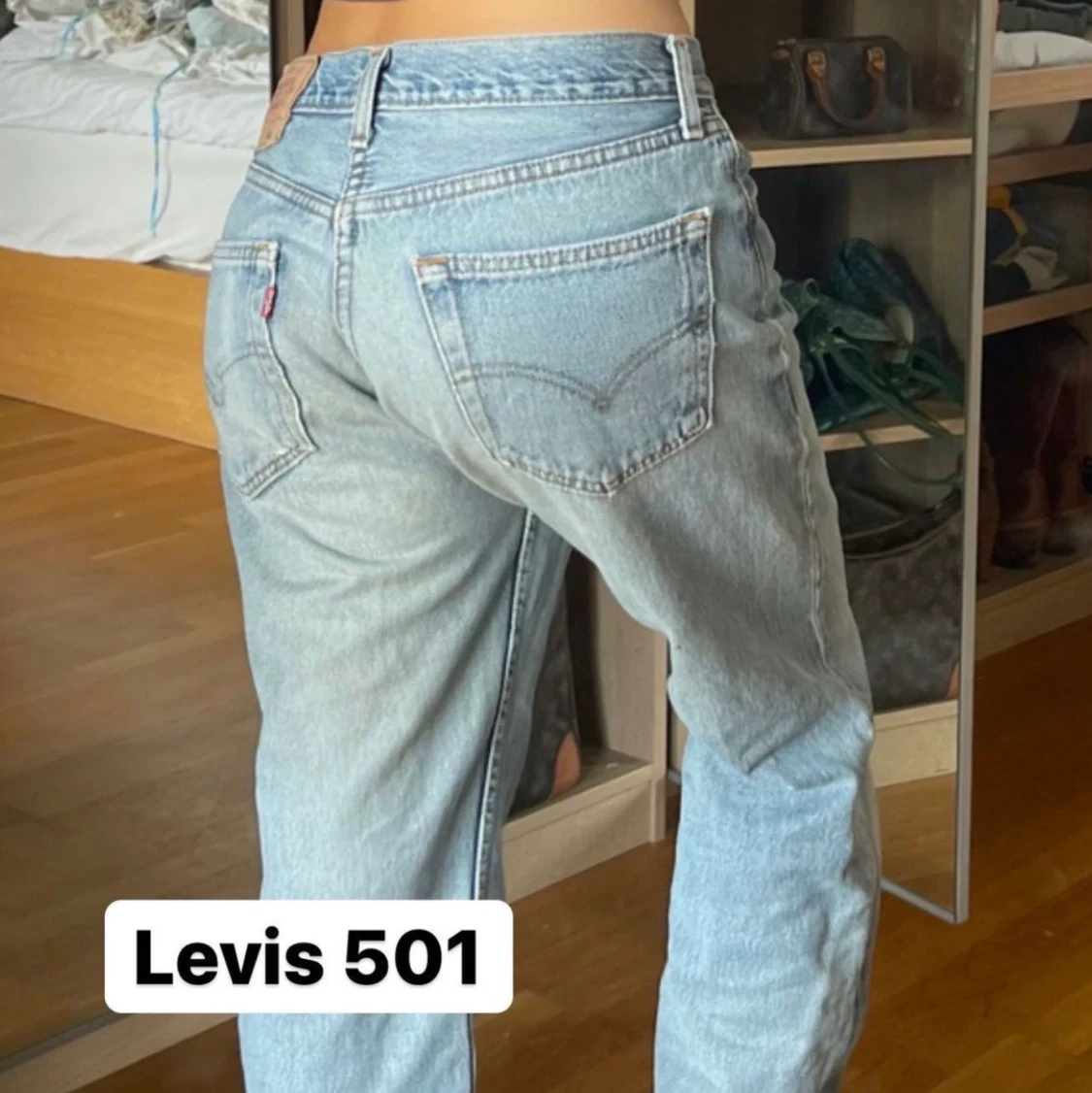 Supersnygga Levis 501 jeans. Den tredje bilden är min egna och de två första samma midjestorlek (31) fast på Alva Blomdahl som referens till hur storleken är 💕 Midjemått: 42 och Innerbenslängd: 82
