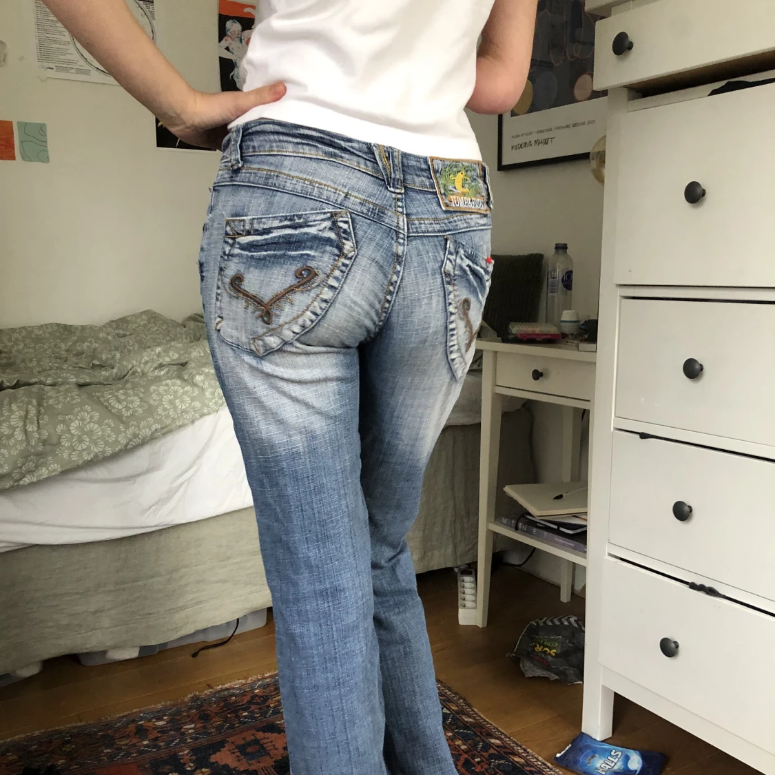 Riktigt feta jeans lite y2k vibe passar till allt love them, midjemått: 35cm innerbenslängd: 82cm