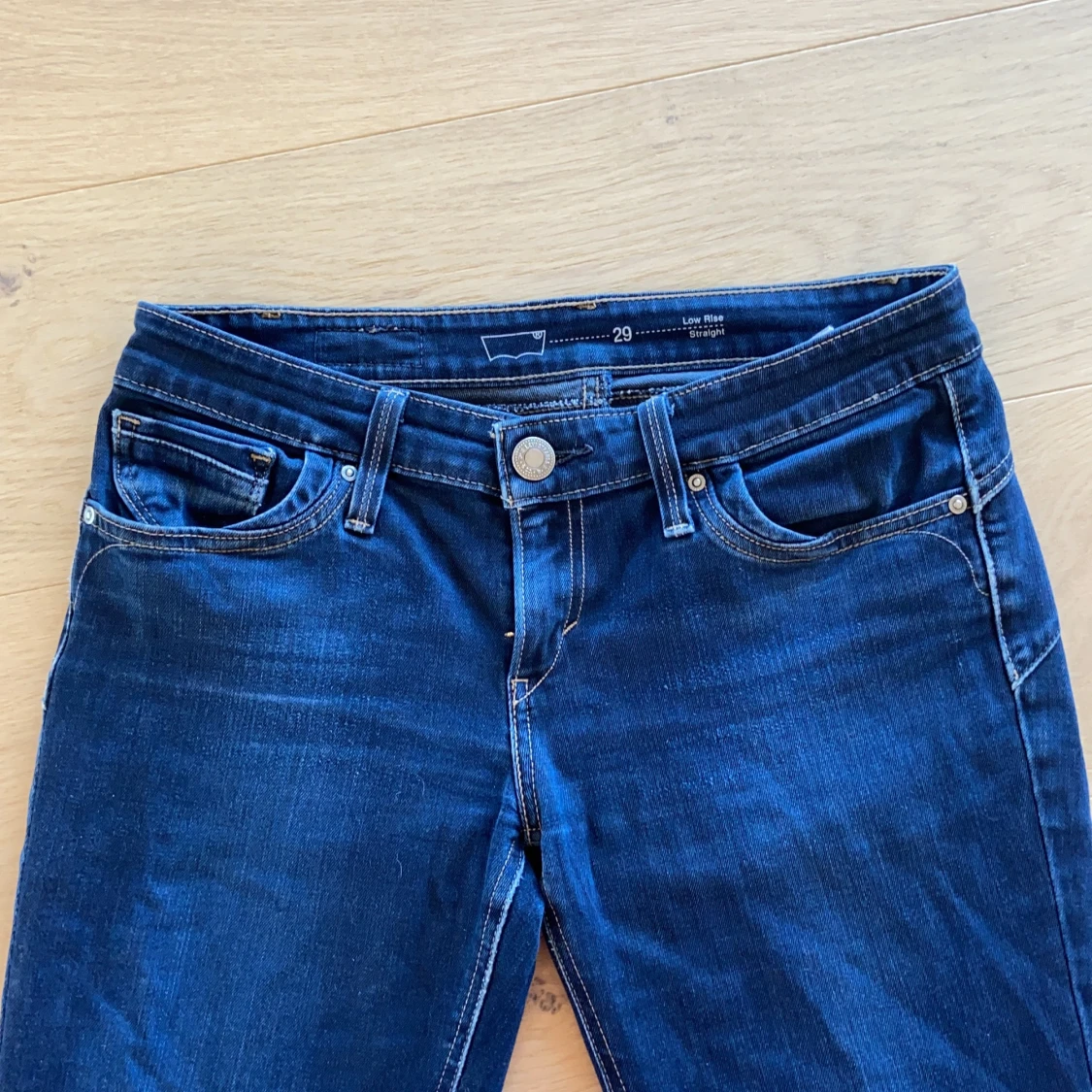 Super snygga mörkblåa lågmidjade Levis jeans köpta från Relow. Står att de är en storlek 29 i midjan men passar om du har 36. De är även långa i benen.