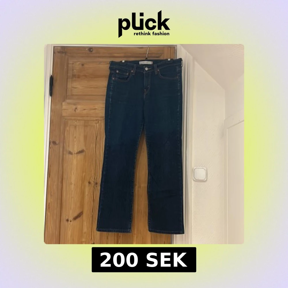 Ett par midwaist Levi's 501 jeans i mörkblå tvätt med raka ben. Dessa är köpta hör på plick och är i utmärkt skick och har sedan dess används ett par gånger av mig🥰