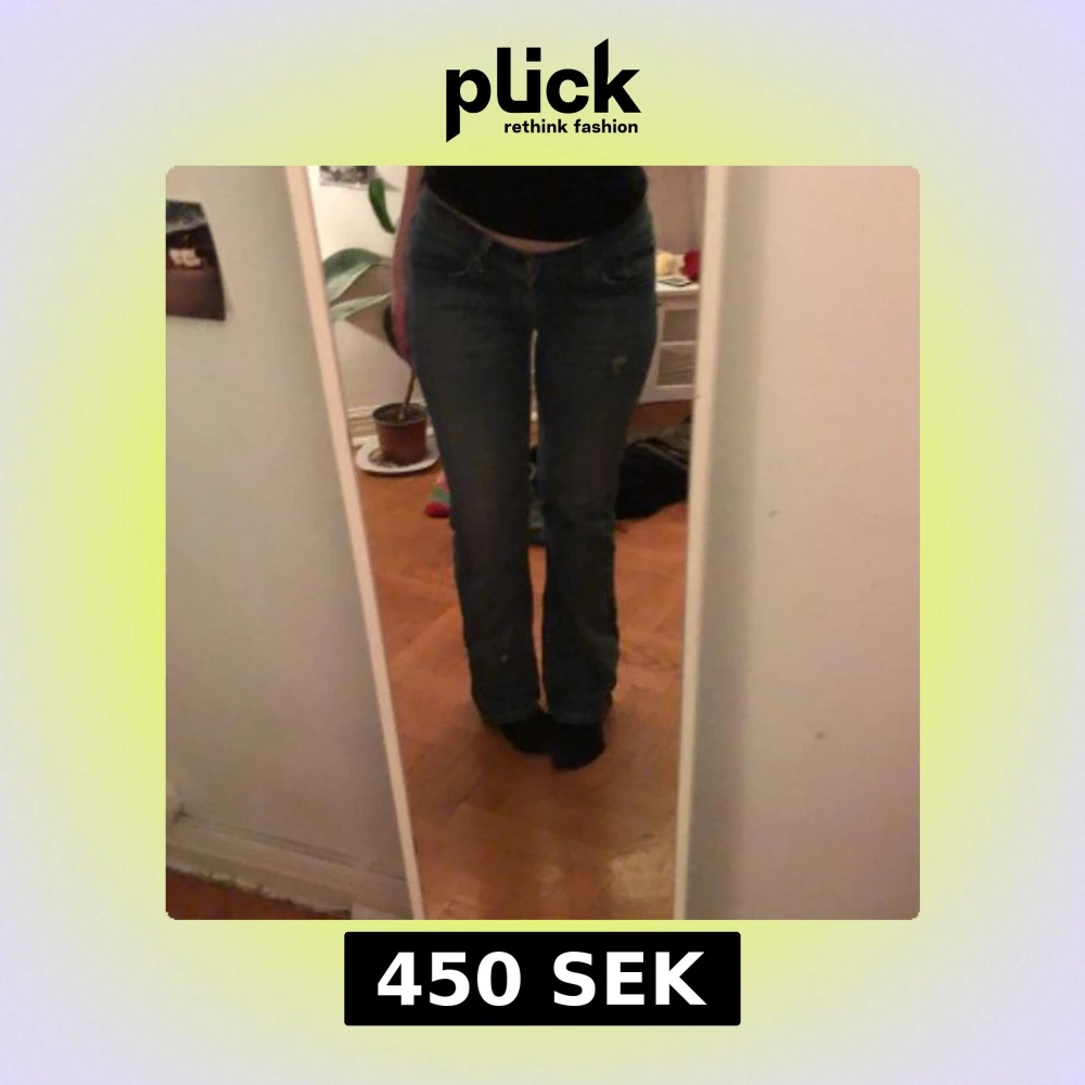 Säljer ett par blå jeans med curvy cut. De har en klassisk femficksdesign och en bekväm passform. Perfekta för en avslappnad stil.