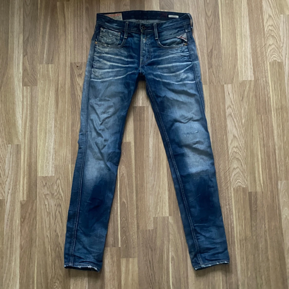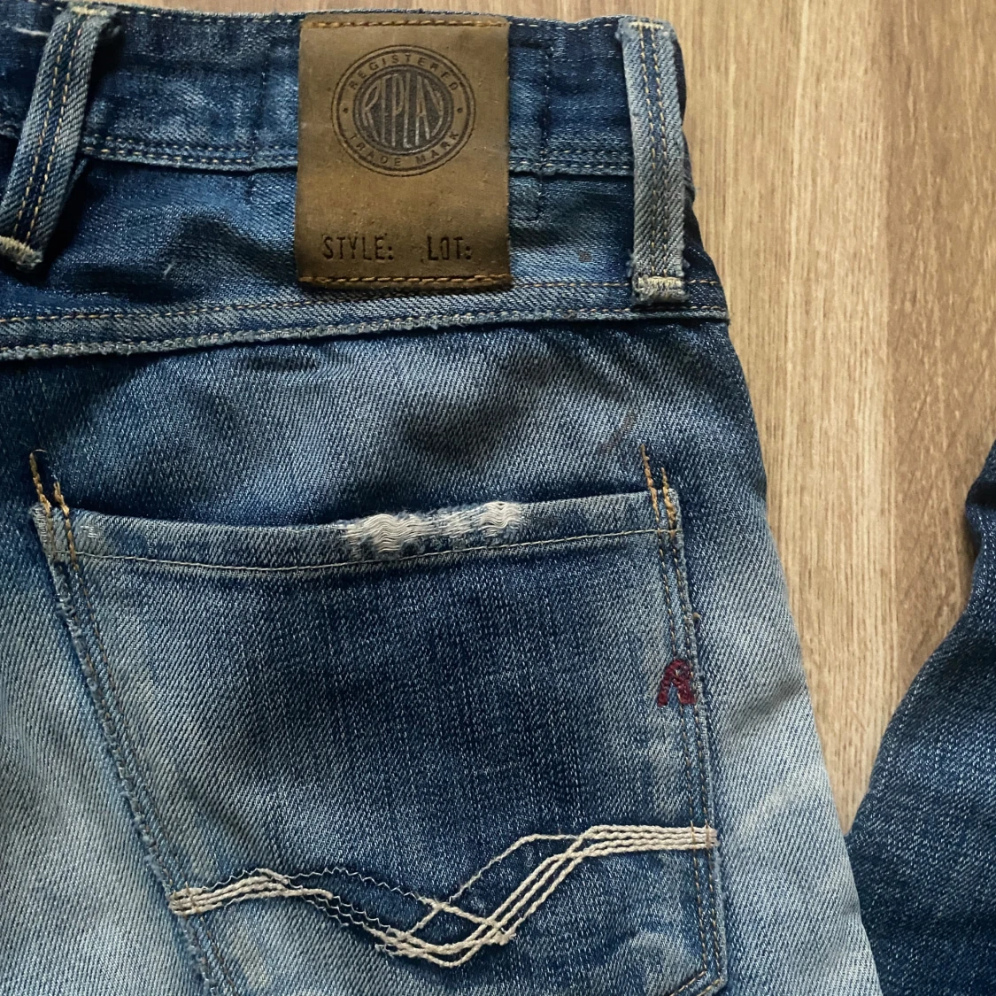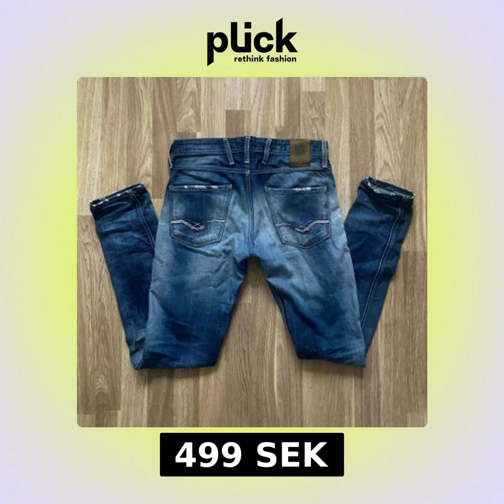 Säljer dessa replay jeans i snygg färg med riktigt feta slitningar, skriv vid minsta fundering!