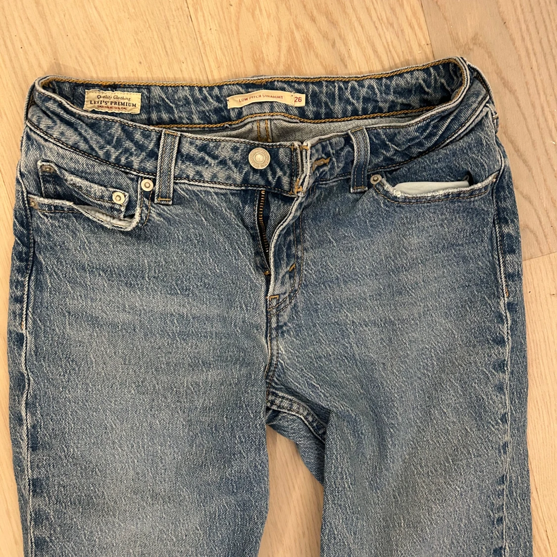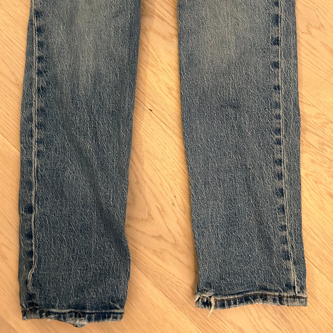 Nästan oanvända levis jeans! Jättebra skick, jag har börjat sprätta upp lite på ena benet för att göra dom längre men går antingen att sy upp eller glra klart jobbet🥰☺️