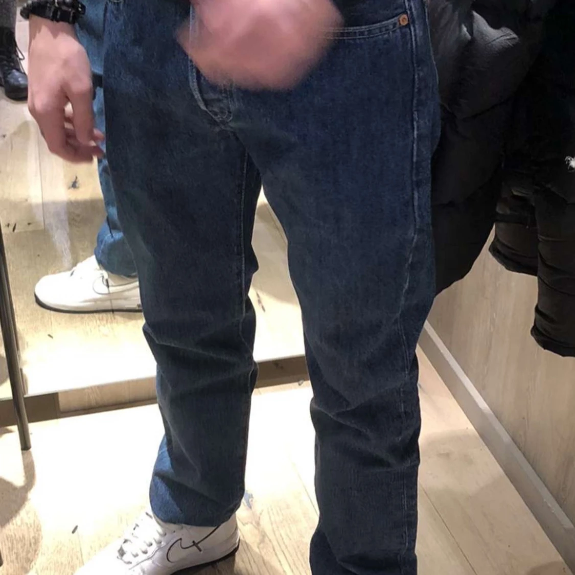 Klassiska blå jeans med en straight passform. De har en midwaist design och är perfekta för en avslappnad stil. Byxorna har en dragkedja och knappar framtill. Från Levis, nypris 1200, storlek 33/33