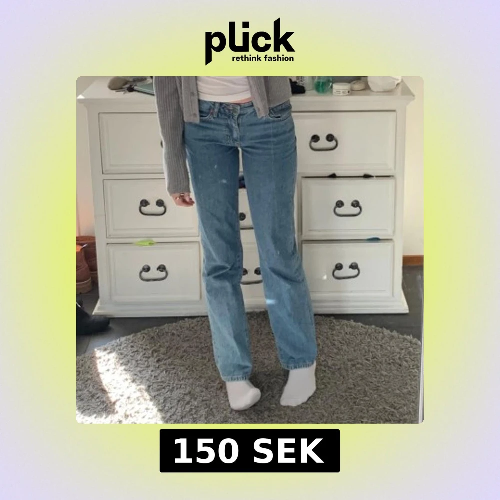 Ljusblå straight jeans i storlek 24/32. Har dock sprättat upp längst ner för att de ska bli lite längre, passar mig perfekt som är 1.66☺️
