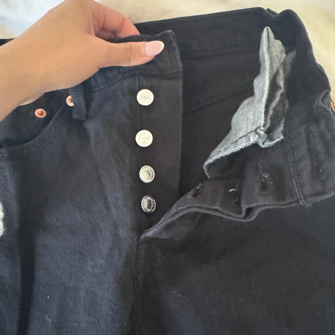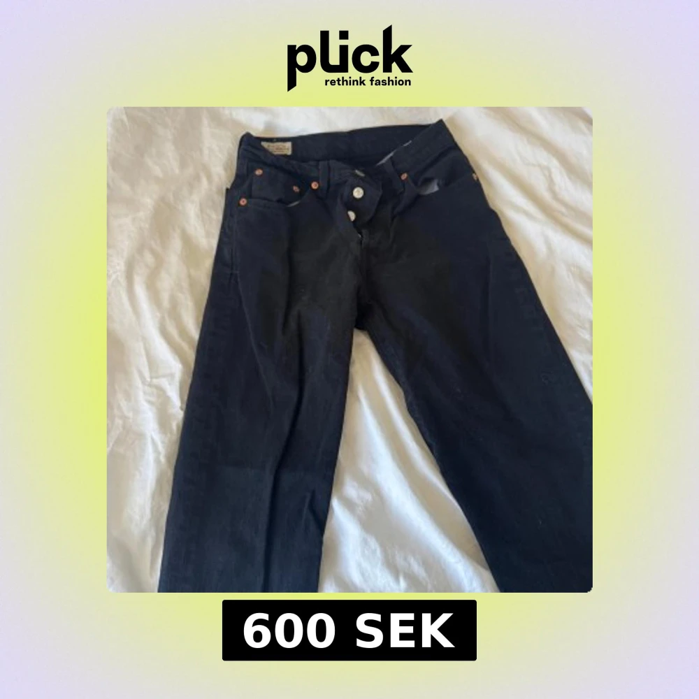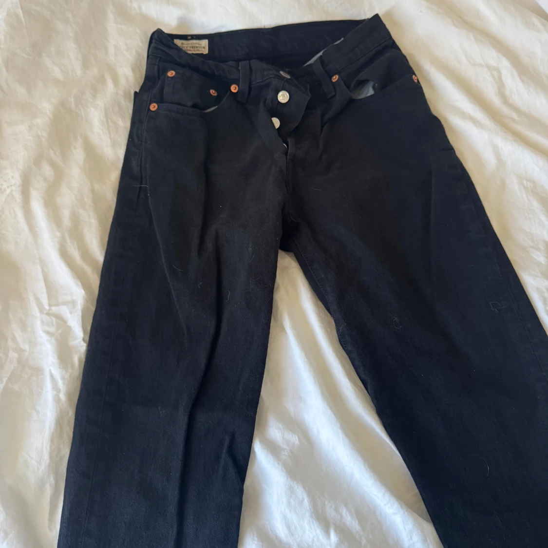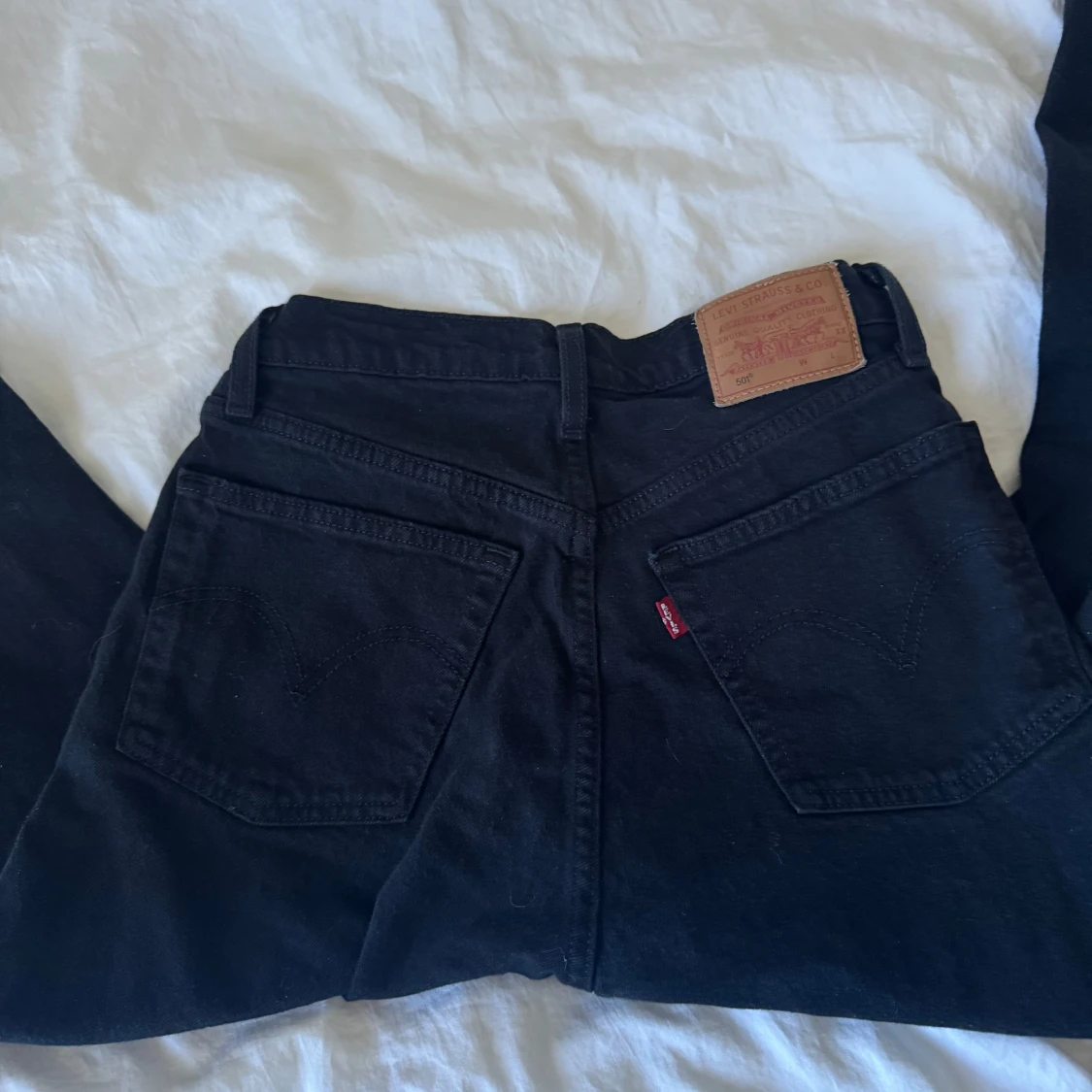 Snygga svarta jeansbyxor från Levi's med knappgylf och klassisk femficksdesign. Byxorna har en rak passform och är perfekta för en stilren look. Levi's-logga syns på baksidan. W25 L30