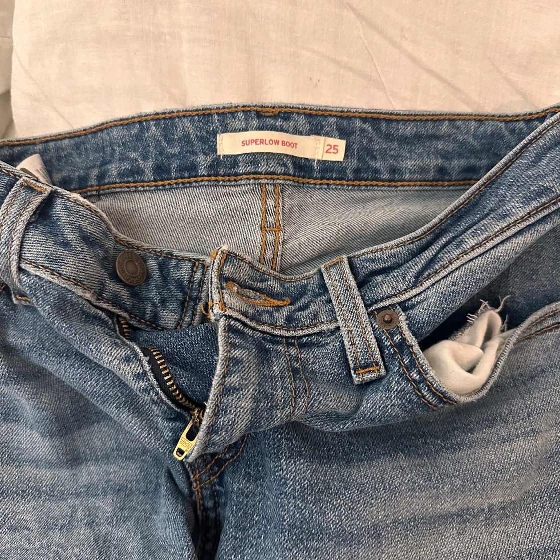 Säljer nu mina levi’s jeans då dom ej kommer till användning, dom är modellen superlow boot🩷w 25
