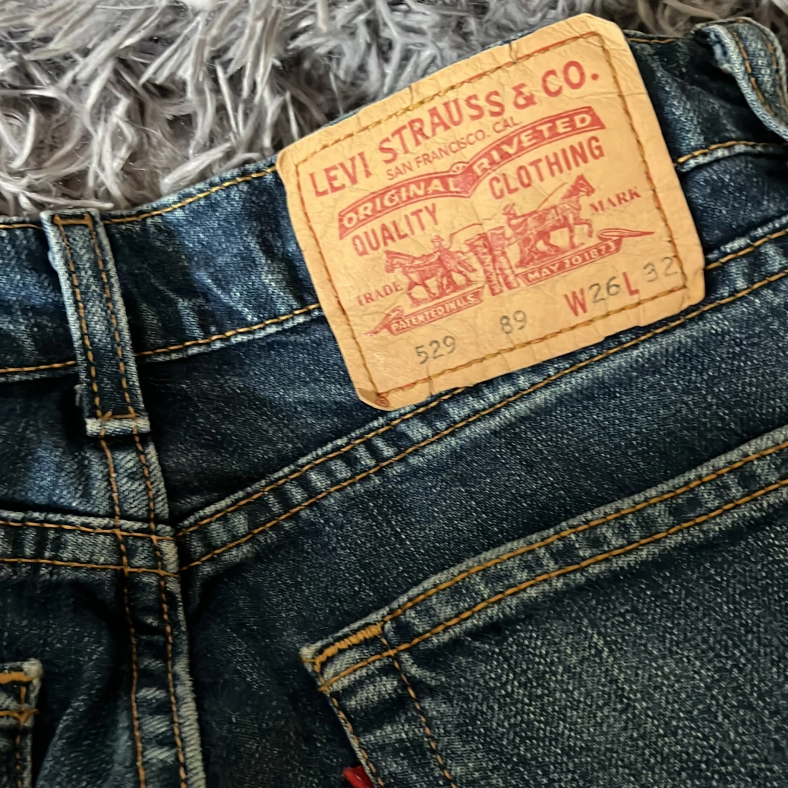 Säljer ett par klassiska Levi's 529 jeans i blå denim med bootcut passform. Jeansen har dragkedja, fem fickor och snygga kontrastsömmar. Perfekta för dig som gillar en tidlös look med lite utsvängda ben. Jeansen är sen min mamma var i tonåren och hon sa att det kostade ca 2500-3000 när hon var ung som nypris