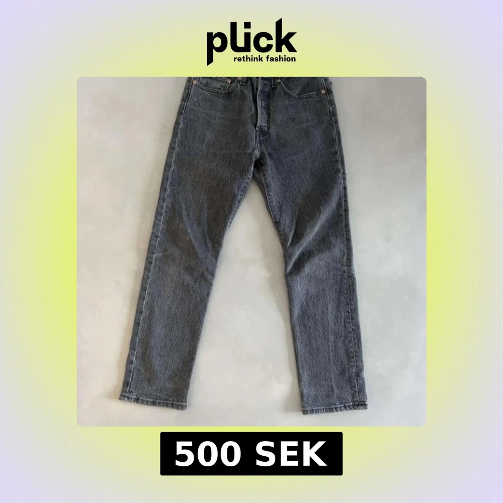 Säljer ett par klassiska grå Levi's 501 jeans med raka ben och femficksmodell. Jeansen har knappgylf och är tillverkade i slitstarkt denim. Perfekta för dig som gillar en tidlös och avslappnad stil.