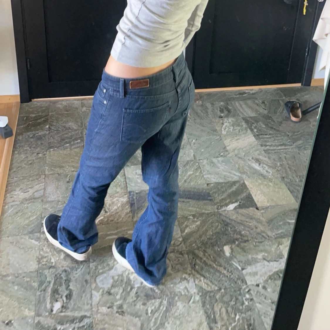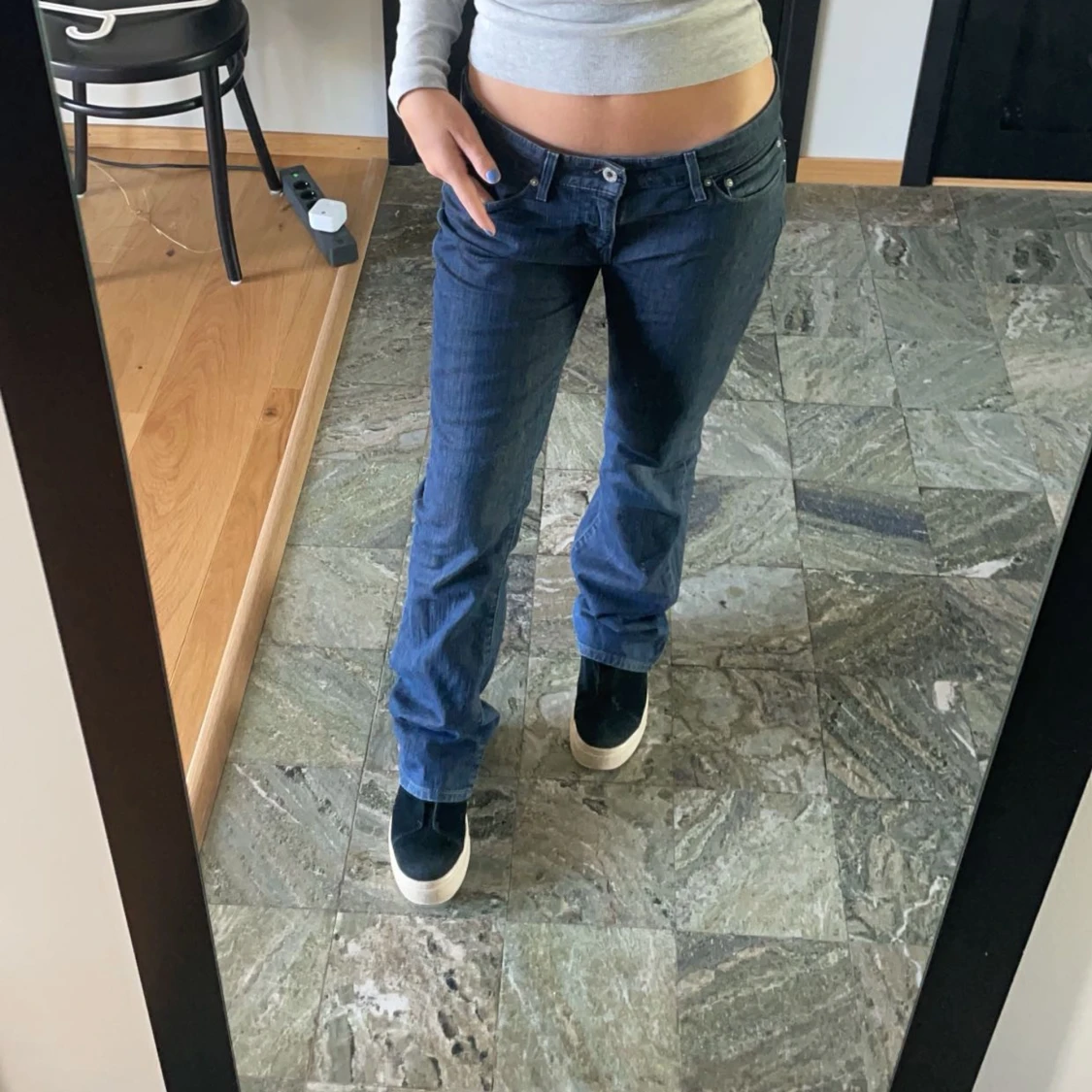 Lågmidjade levis jeans köpta här på plick, de kommer inte till använding så därav att jag säljer dem. De är storlek W27 men jag har i vanliga fall storlek 34/36 och de sitter perfekt på mig, är 160 på bilden!