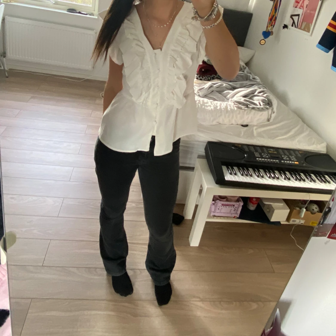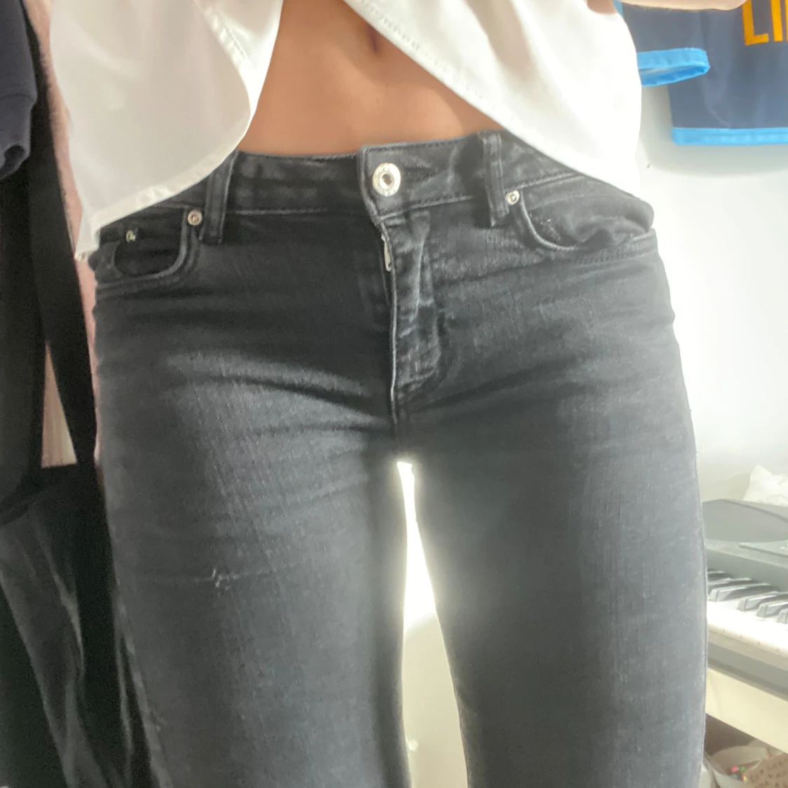 Säljer ett par svarta jeans ifårn grunt med lågmidja och bootcut. Super sköna och matchar till allt! Köpt från kids brand för 800kr