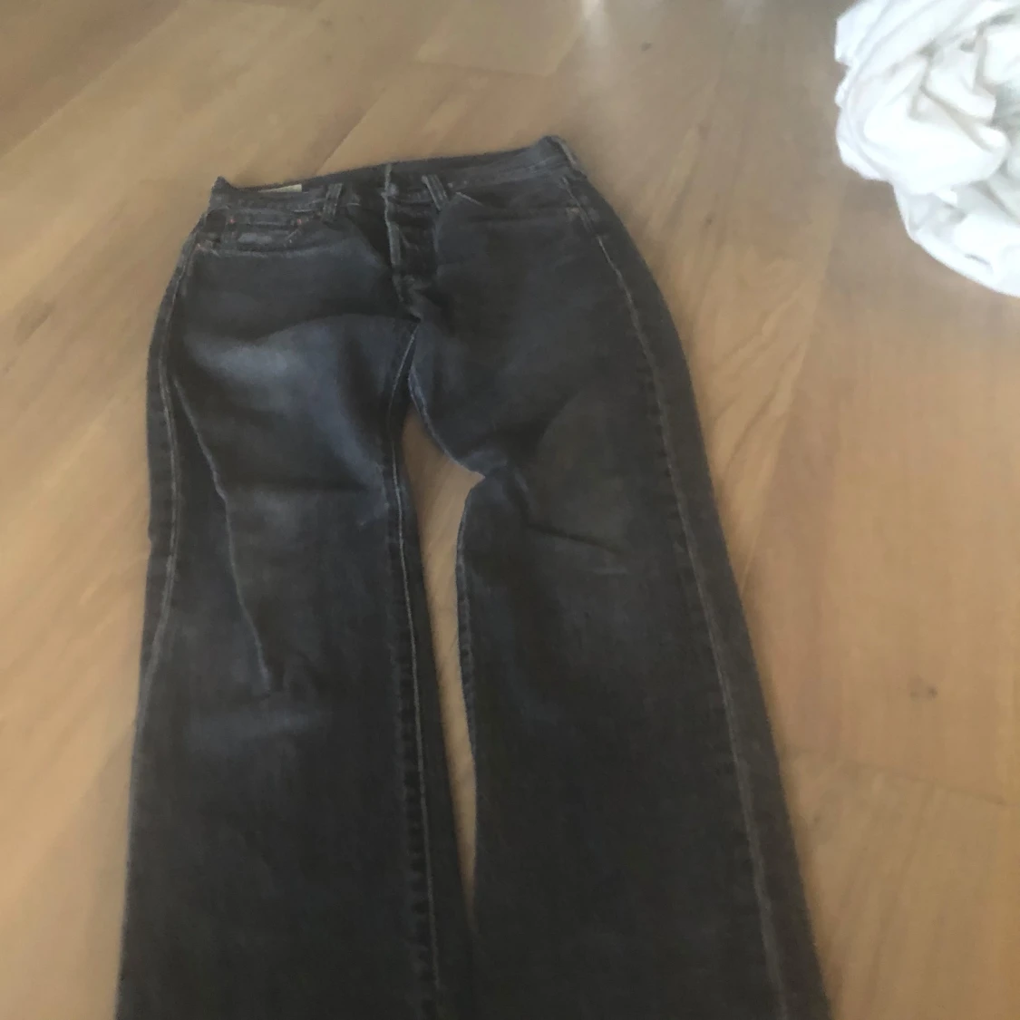 Klassiska svarta Levi's 501 jeans med rak passform och knappgylf. Jeansen har en mörk tvätt och är tillverkade i slitstarkt denim. Perfekta för dig som gillar en tidlös och avslappnad stil.
