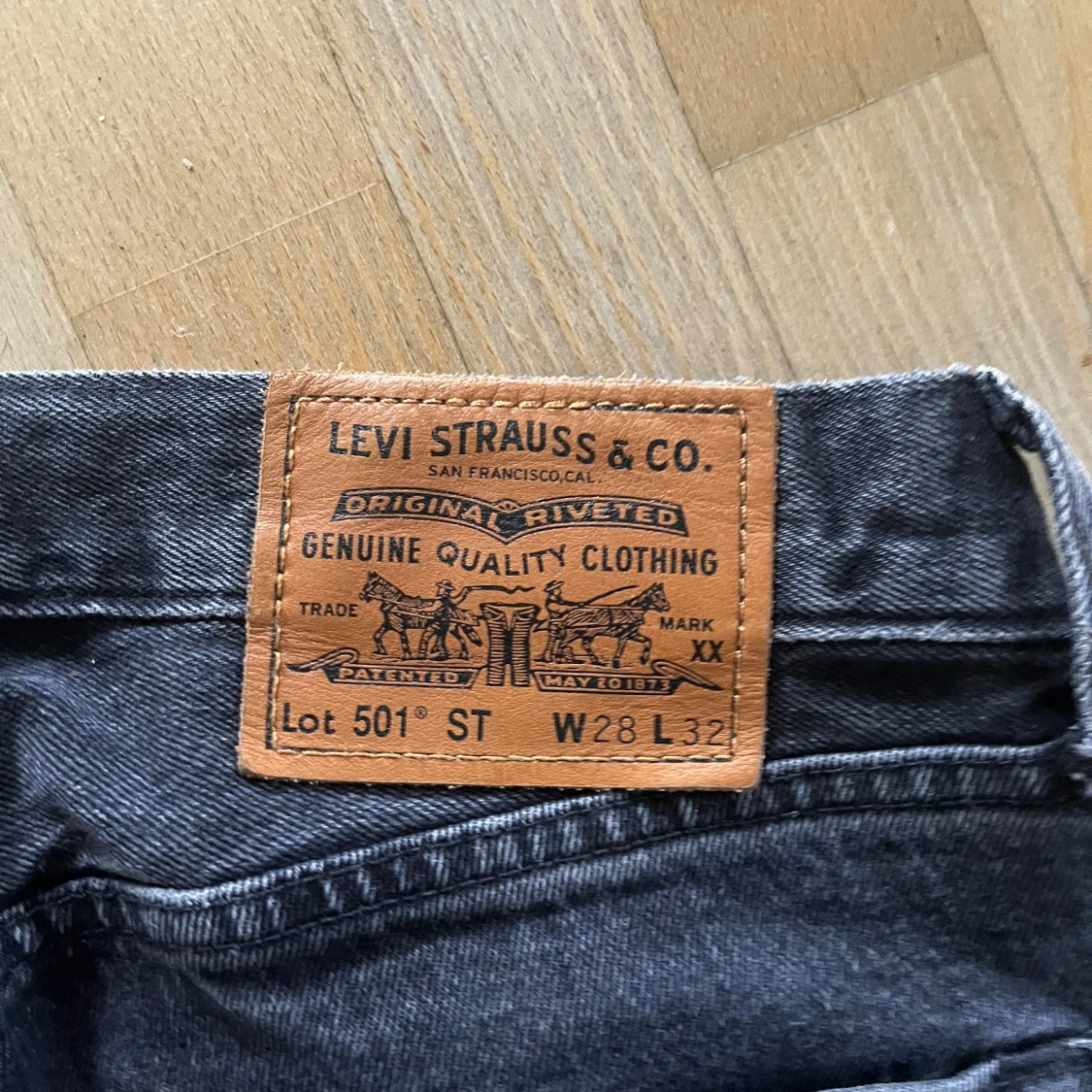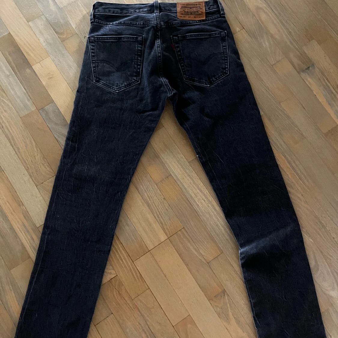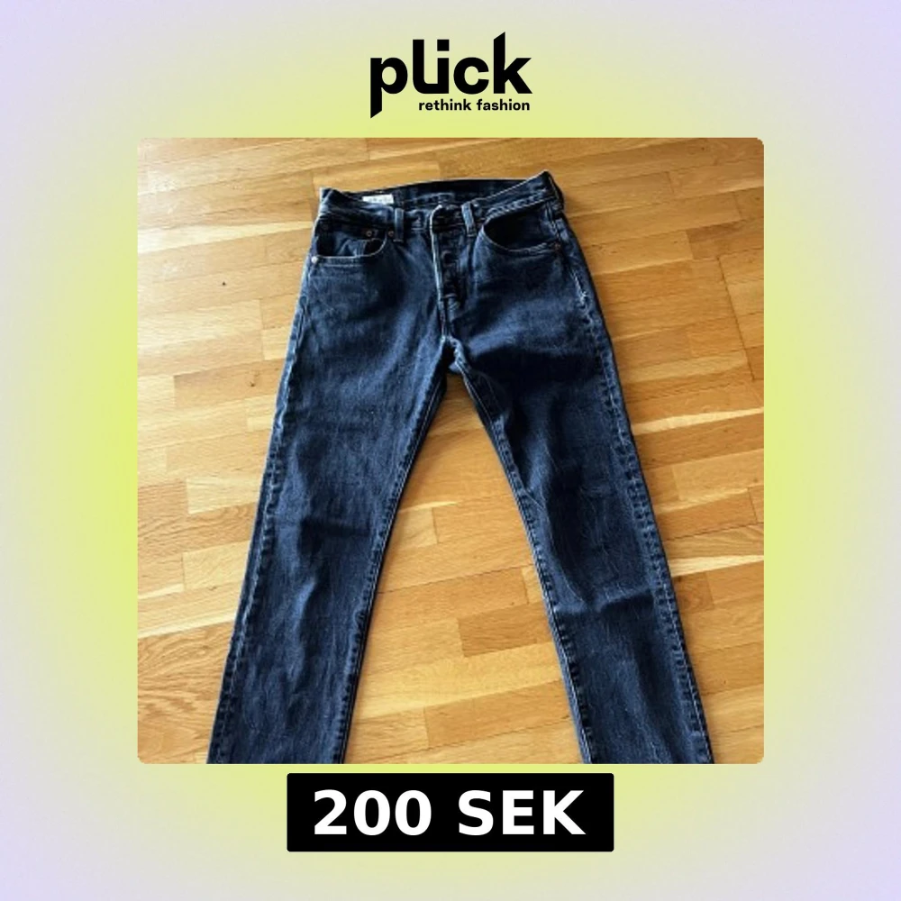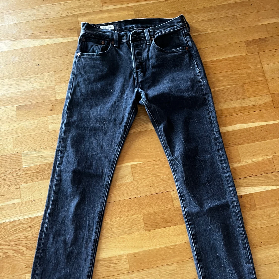 Säljer ett par klassiska svarta Levi's 501 jeans i rak modell. Jeansen har fem fickor, knappgylf och snyggt mörkt tvättad denim. Perfekta för dig som gillar tidlös stil och vill ha ett par jeans som funkar till allt.
