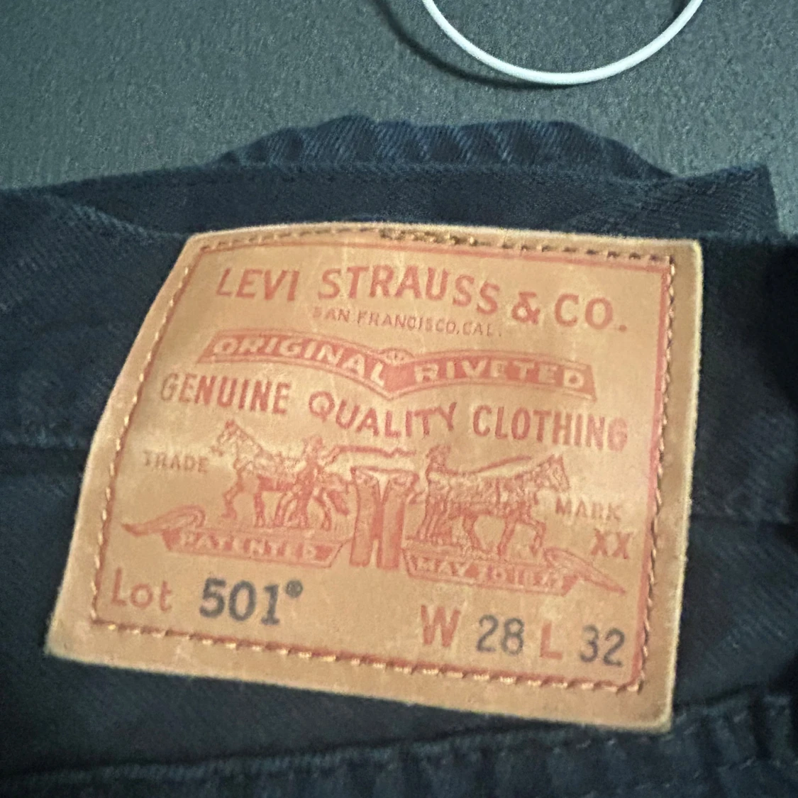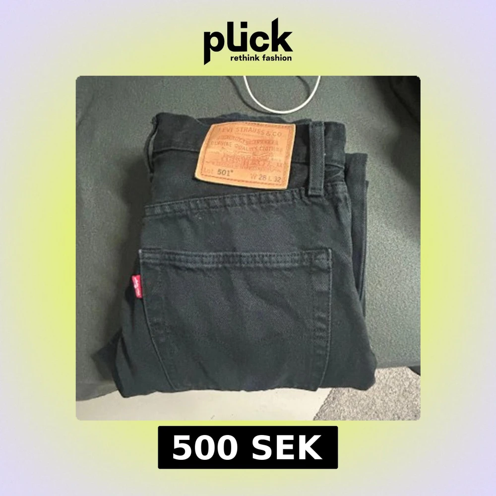 Säljer ett par svarta Levi's 501 jeans i klassisk rak modell. Jeansen har den ikoniska läderpatchen bak och röd Levi's-tag på fickan. Tillverkade i slitstarkt jeanstyg och passar perfekt för en clean och tidlös look.