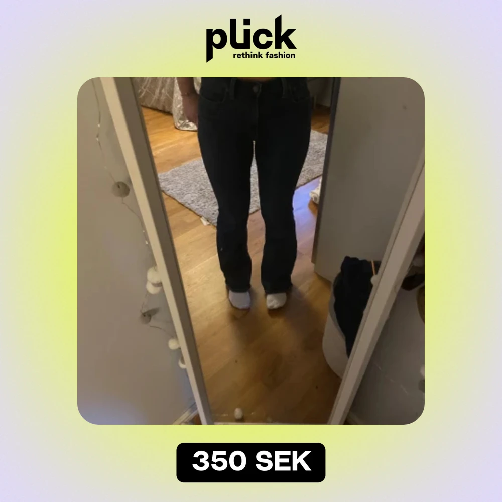Hög midjade flared Levis jeans. Mörkblå, slitna längst ner men inget annat, säljer då dem inte är min stil längre. Pris kan diskuteras vid snabb handel. Storlek 29 men passar mer som en 27/28, är lite stora på mig som brukar ha 26/27. Köpta för≈900