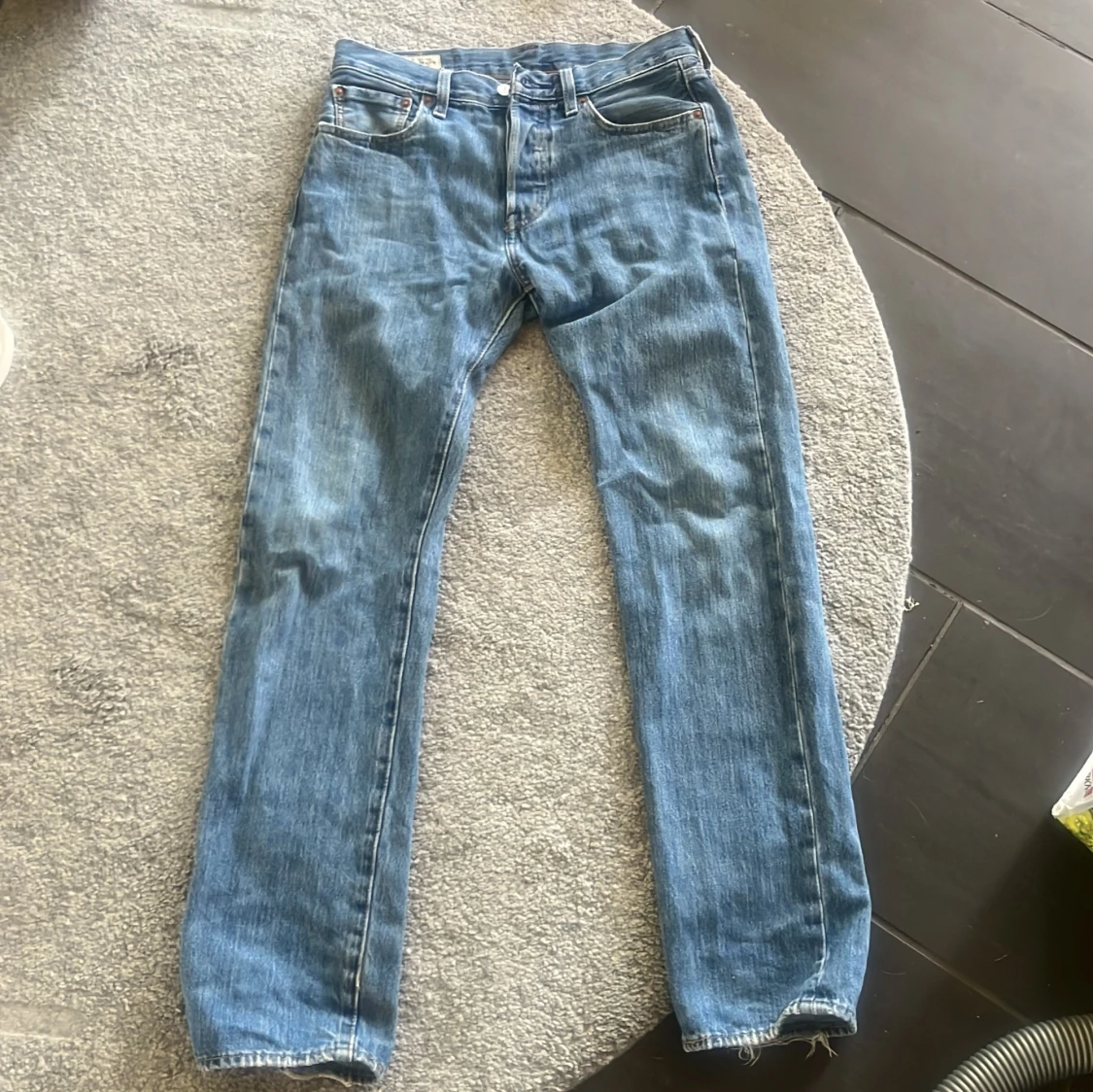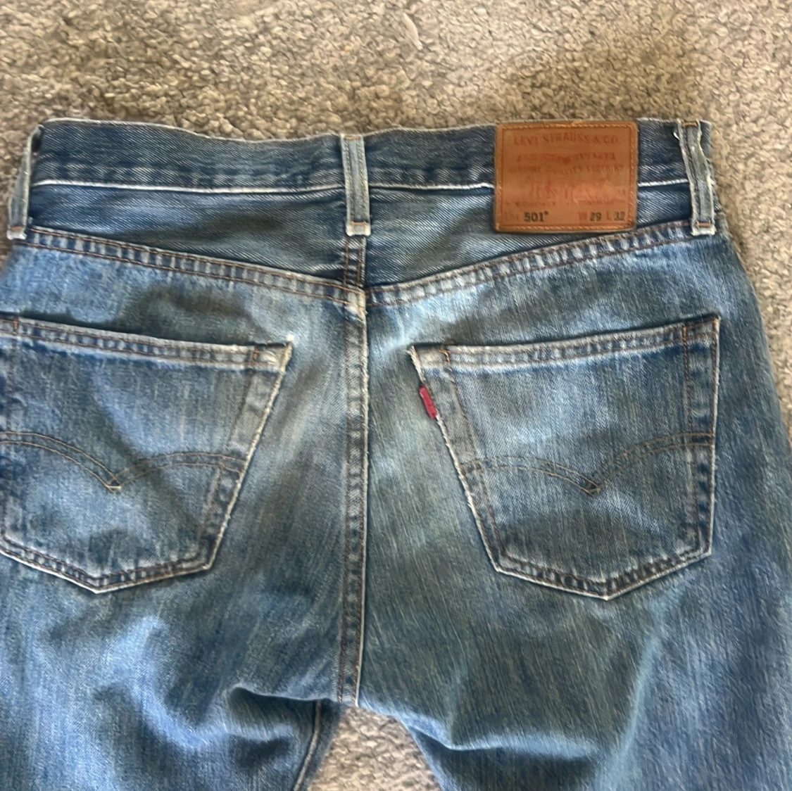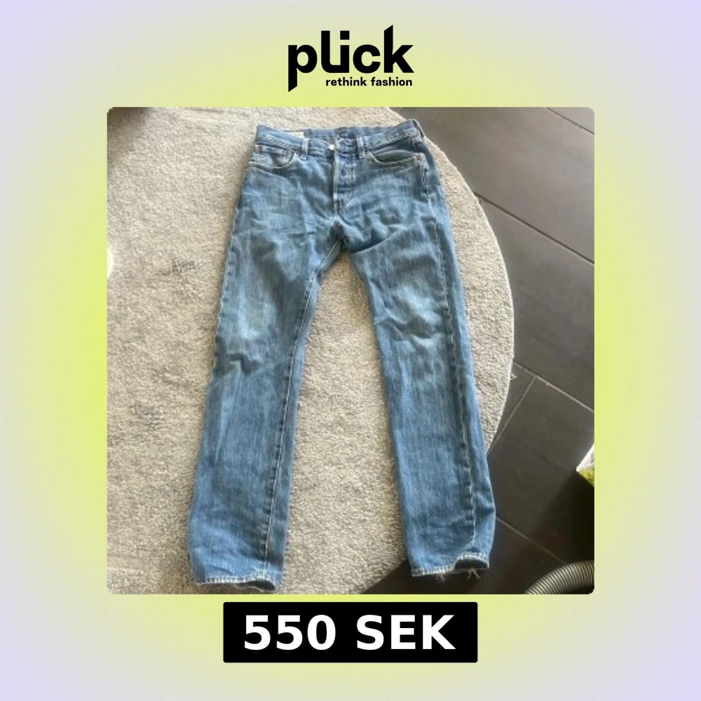 Klassiska Levi's 501 jeans i ljusblå denim med raka ben och normal passform. Byxorna har fem fickor, knappgylf och den ikoniska läderpatchen bak i midjan. Perfekta för en avslappnad och tidlös stil. Org pris:1300