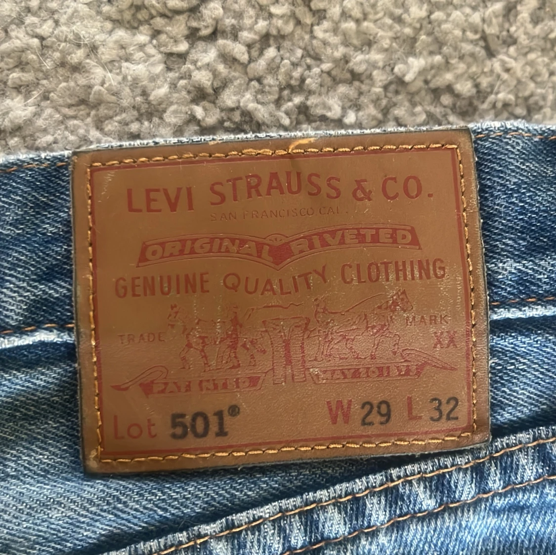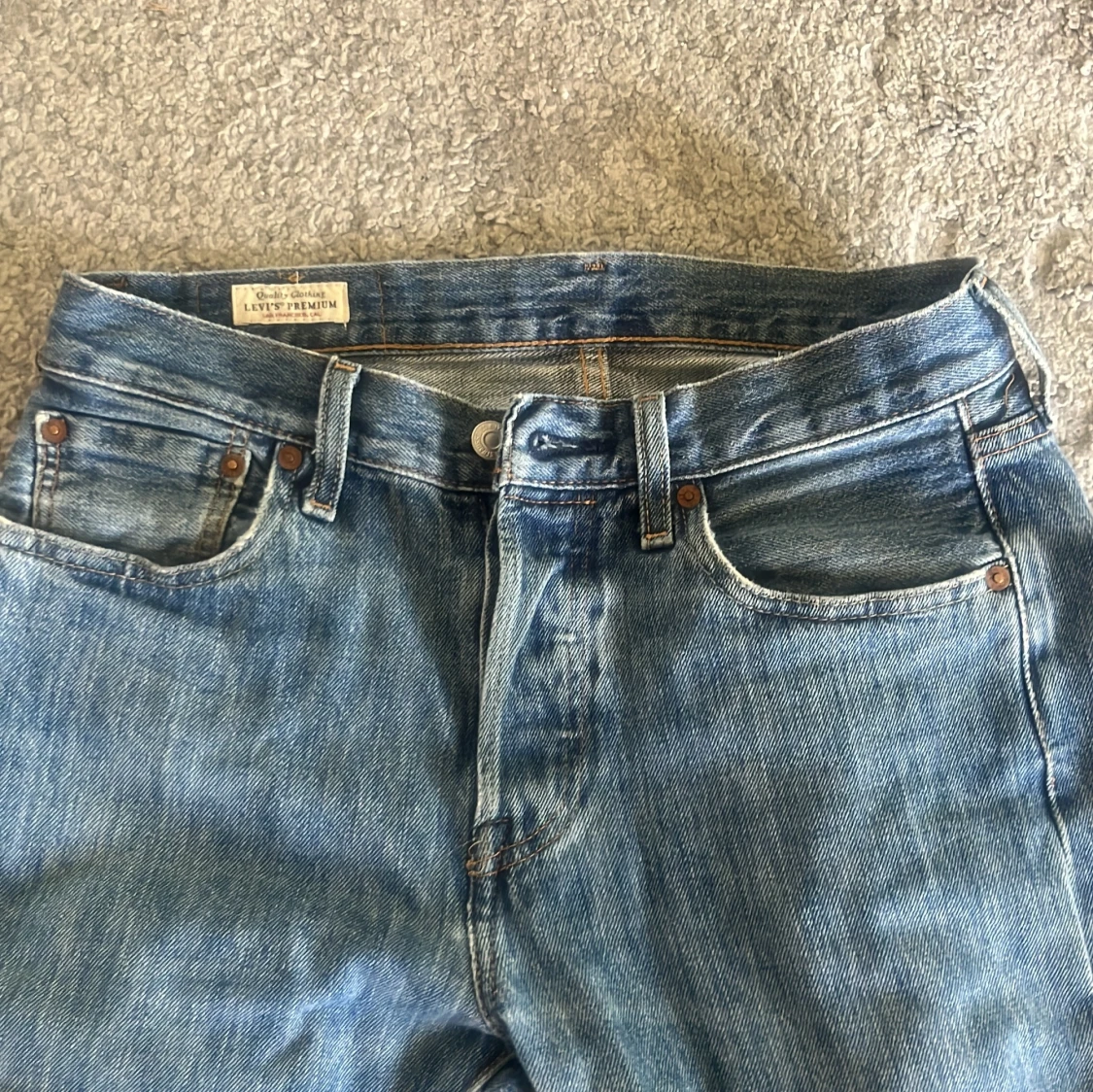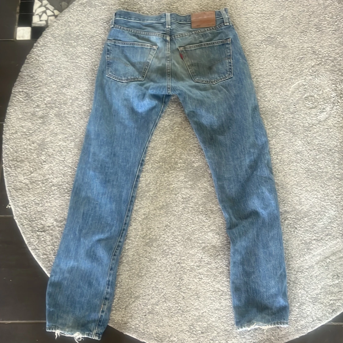 Klassiska Levi's 501 jeans i ljusblå denim med raka ben och normal passform. Byxorna har fem fickor, knappgylf och den ikoniska läderpatchen bak i midjan. Perfekta för en avslappnad och tidlös stil. Org pris:1300