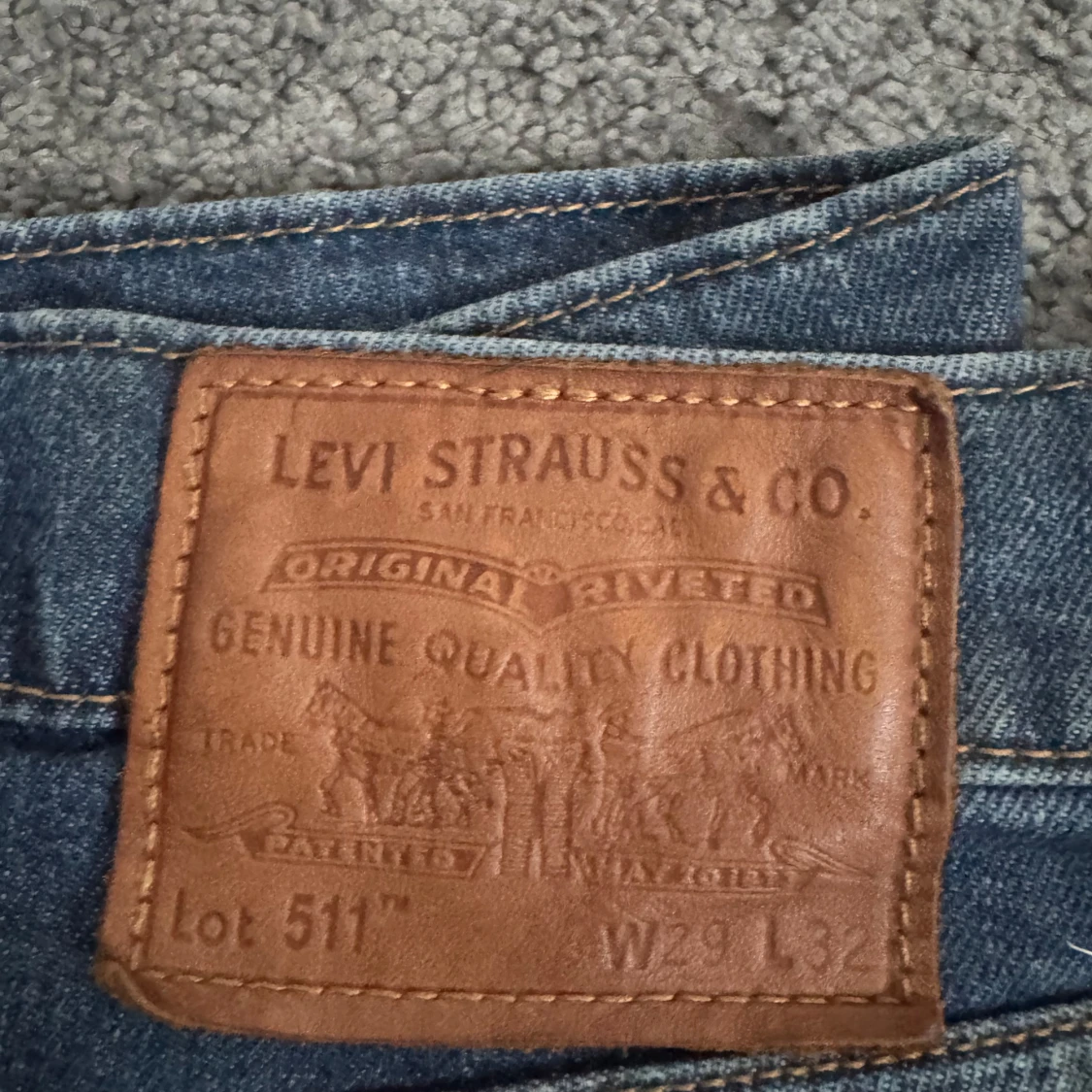 Snygga Levi's 511 jeans i klassisk blå denim. De har en normal passform och är perfekta för en avslappnad stil. Jeansens ikoniska lädermärke på baksidan ger en autentisk touch.