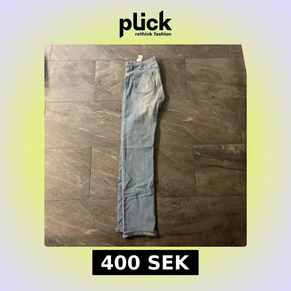Säljer ett par ljusblå jeans från Levi's med klassisk femficksdesign och knappgylf. Jeansen har en straight passform. Nypris ca 1000 men säljer mina för 400.