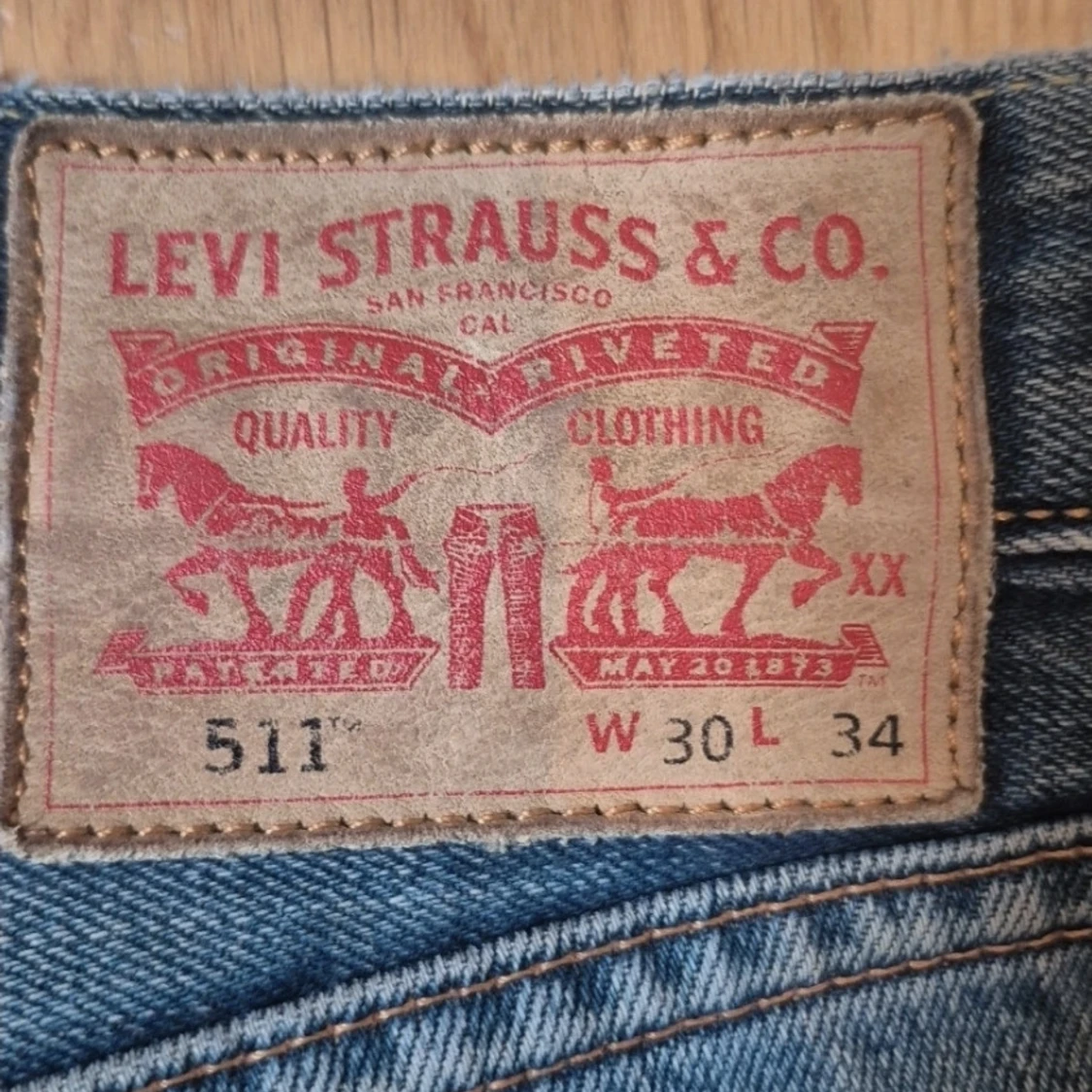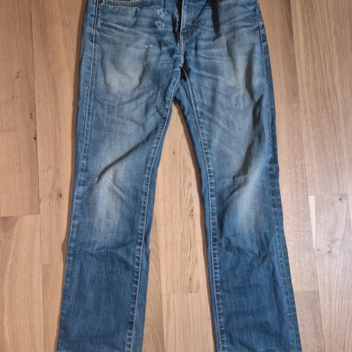 Klassiska Levi's 501 jeans i mellanblå tvätt med snyggt slitna detaljer. Rak passform och femficksmodell, tillverkade i robust denim. Perfekta för en avslappnad och tidlös look.