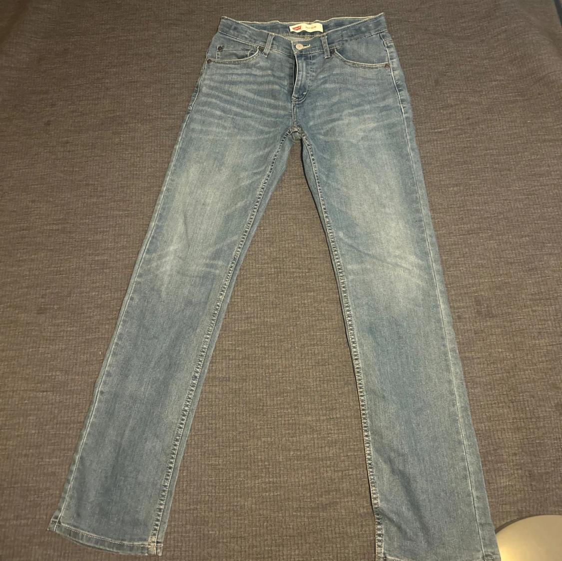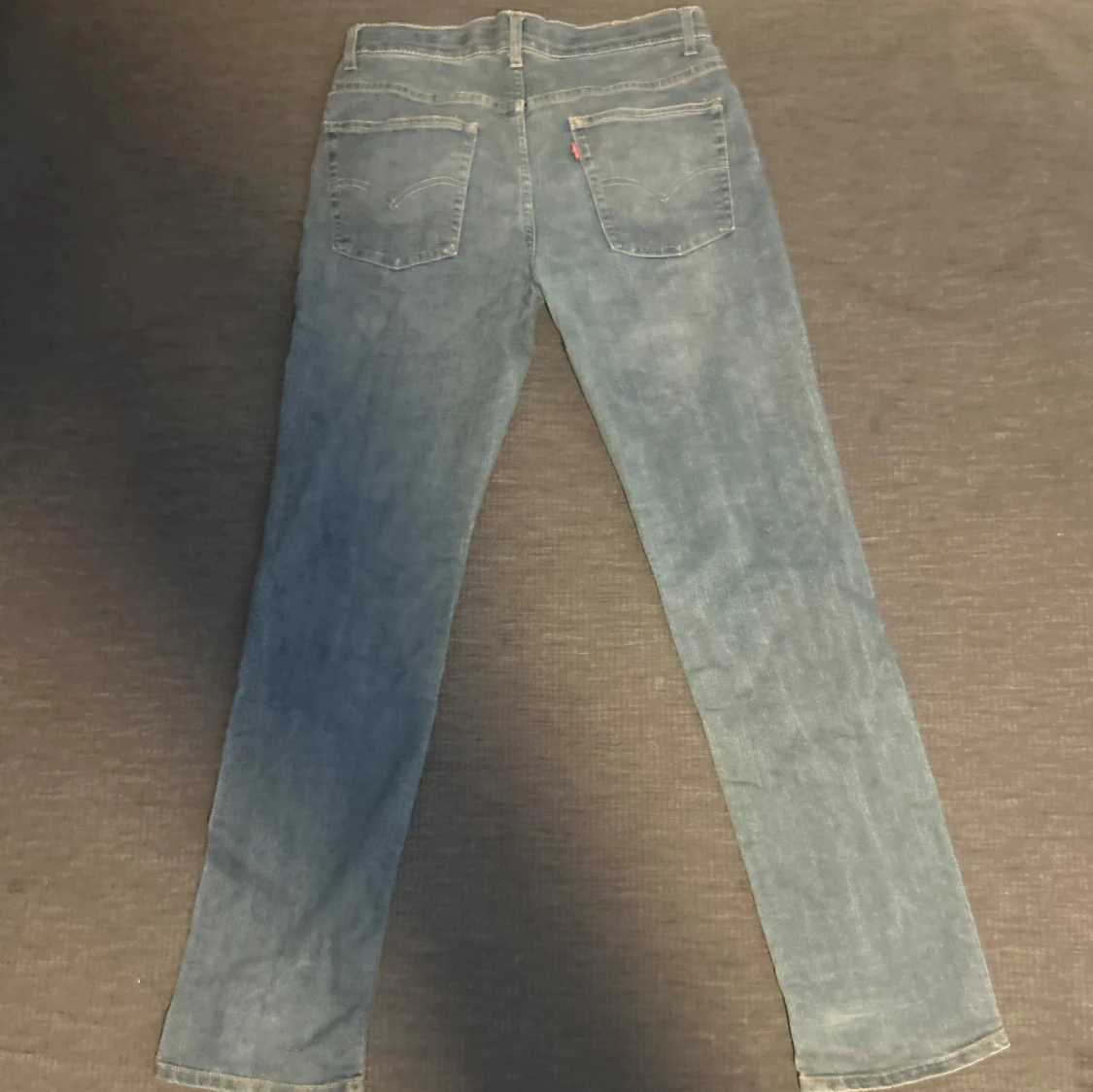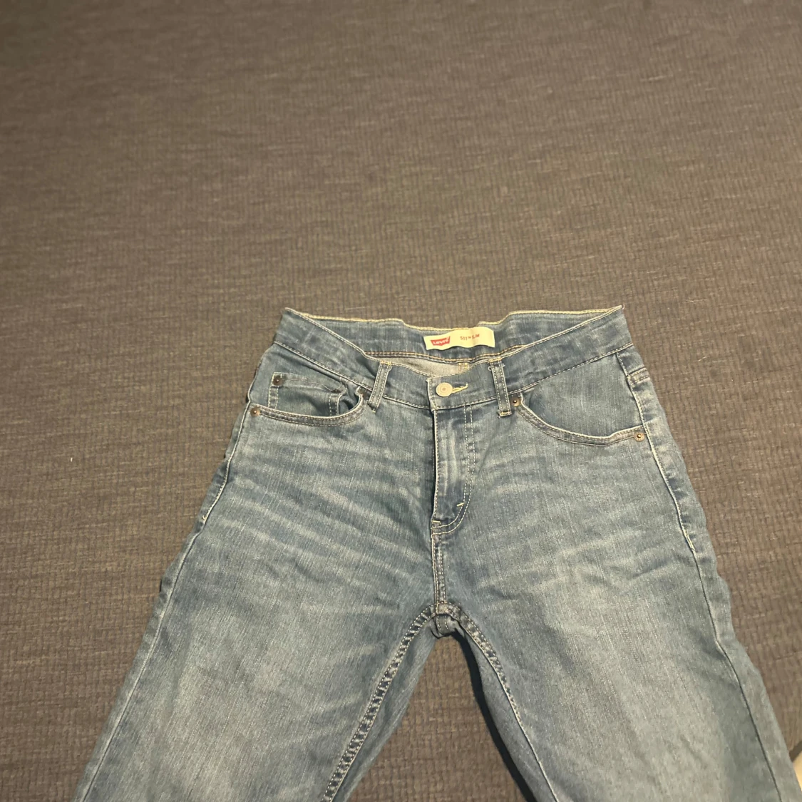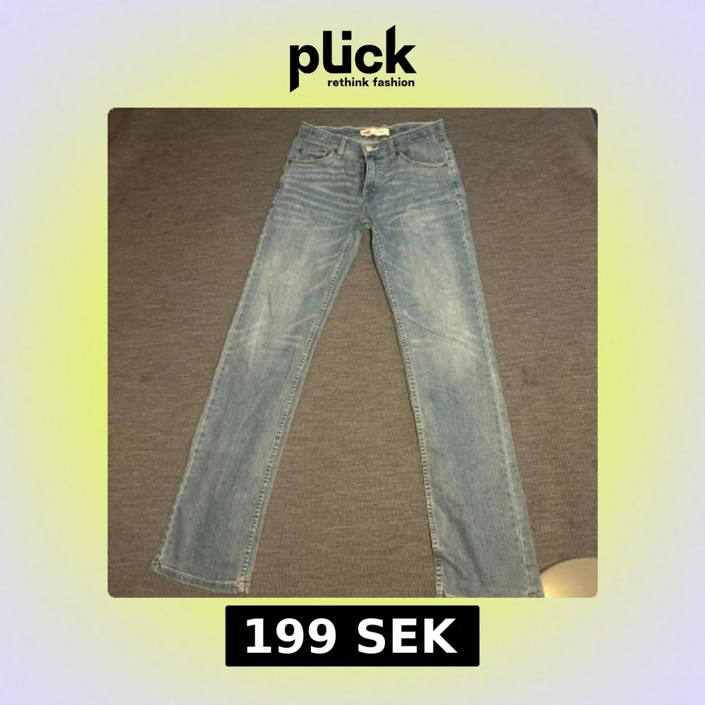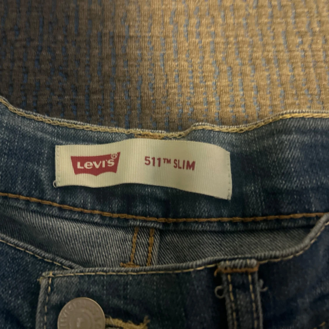 Säljer ett par Levi's 511 Slim jeans i ljusblå tvätt. Klassisk femficksmodell med dragkedjegylf och smal passform. Jeansen är tillverkade i mjukt denimtyg och har subtila slitningar för en avslappnad look.