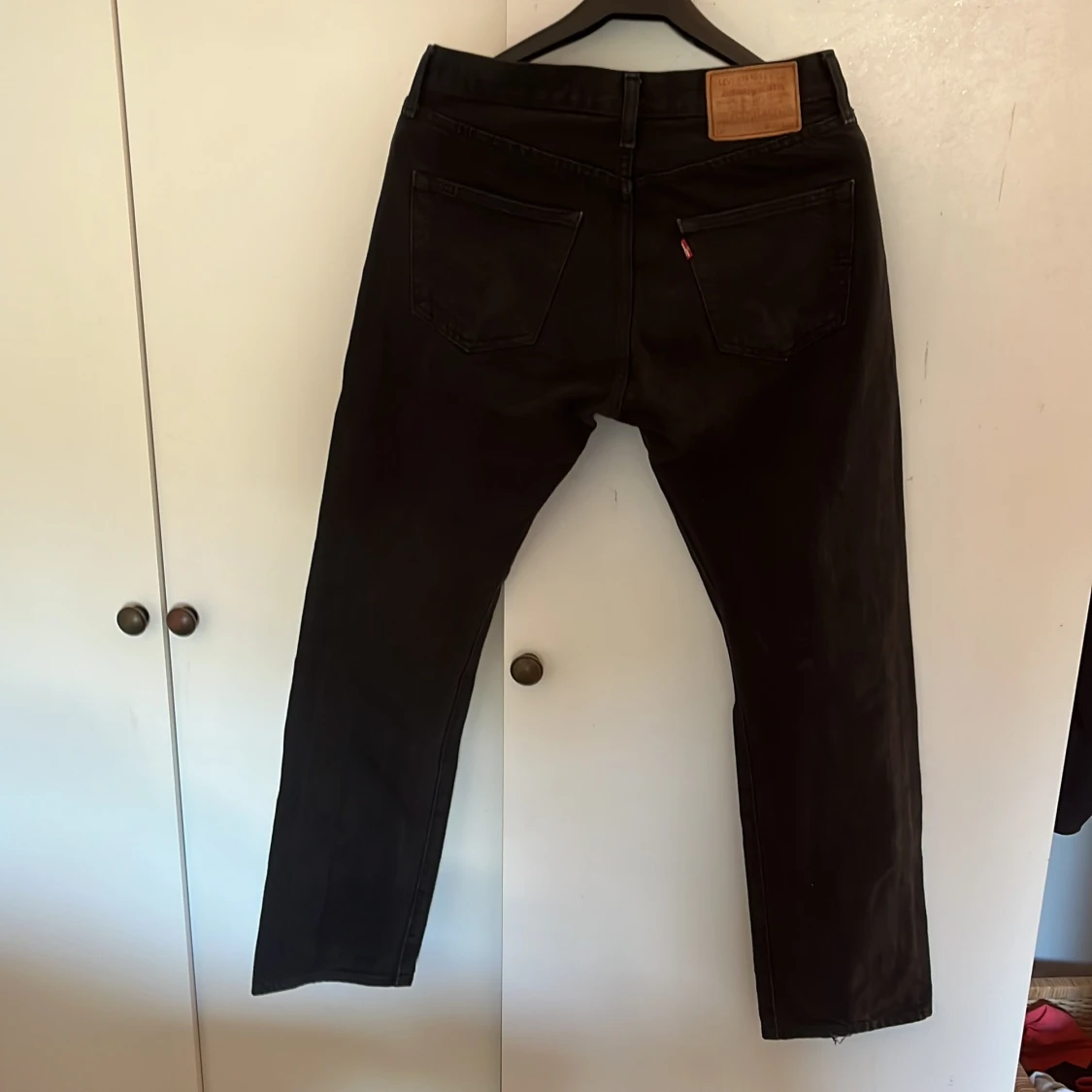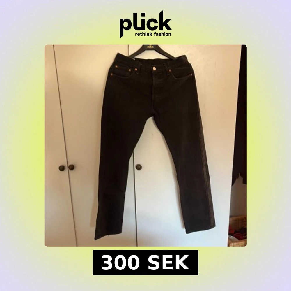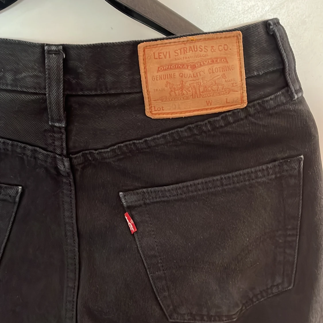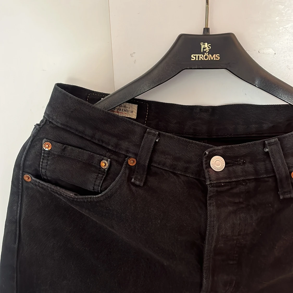 Svarta Levi's 501 jeans i klassisk straight/slim fit. Stl: W30 L32. Dem är i bra skicka och är mycket tåliga. Jag är 191 cm (sitter lite litet på mig) vid fråga är det bara att skriva!