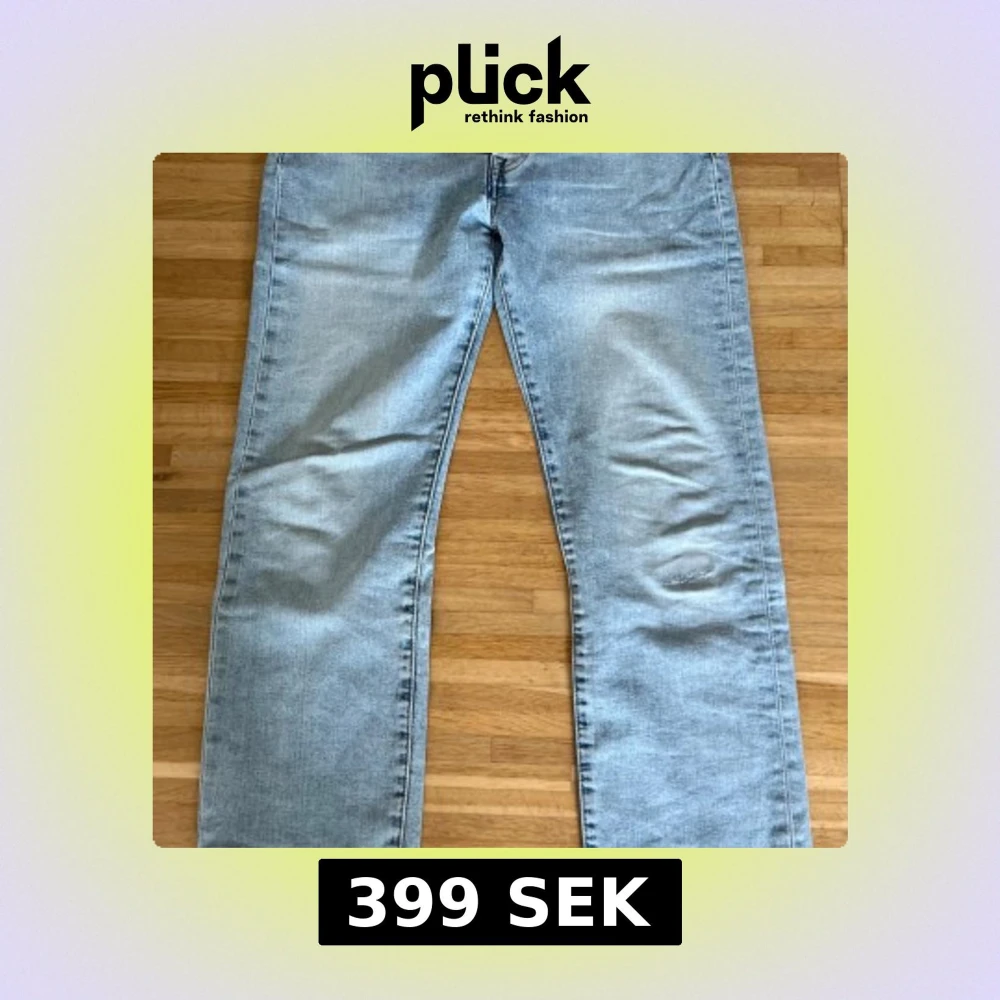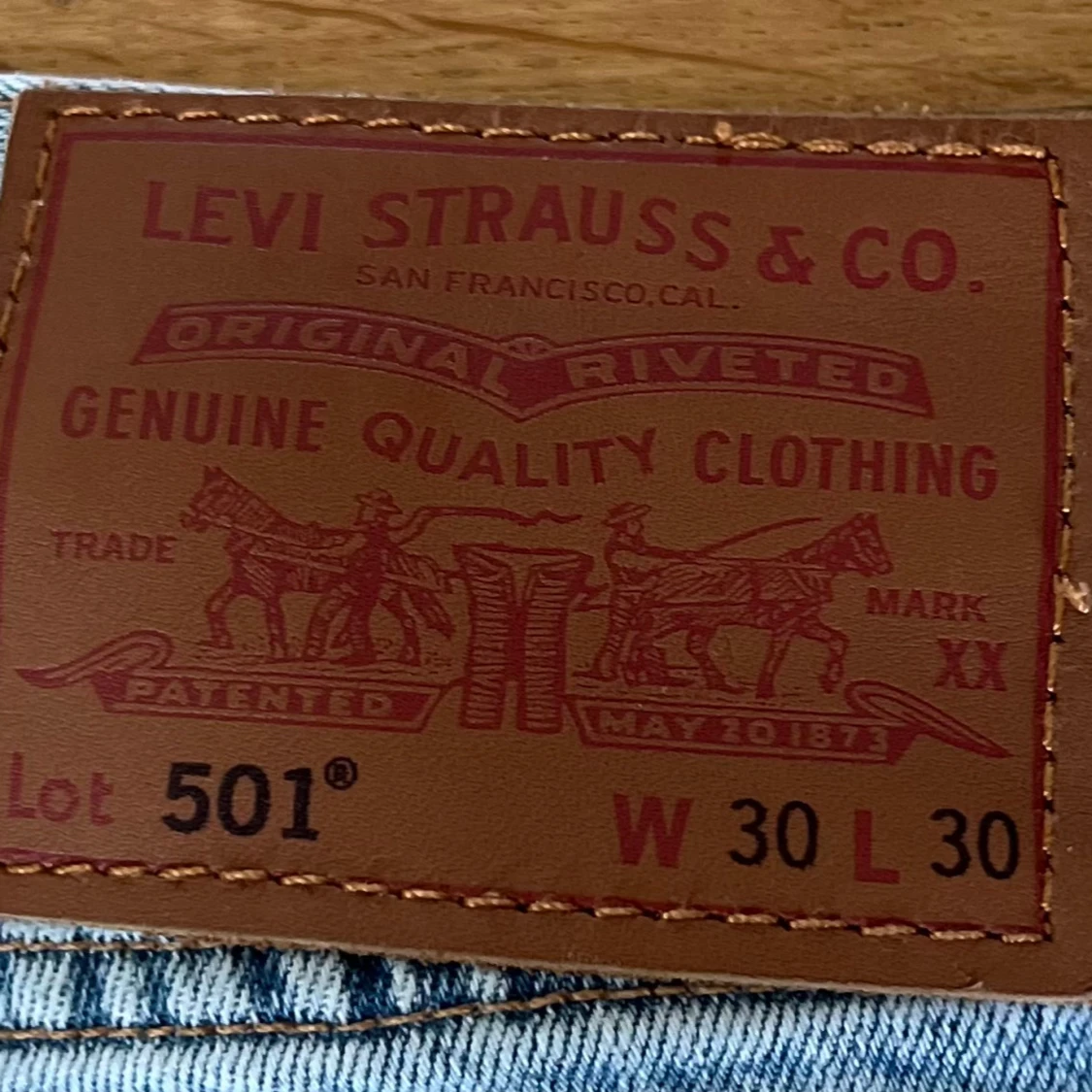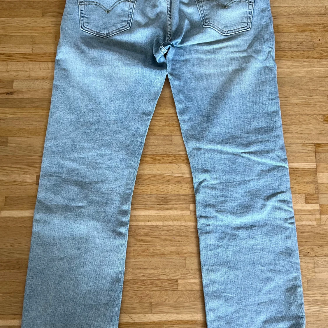 Ljusblå Levi's 501 jeans med klassisk rak passform och femficksdesign. Jeansen har en snygg tvättad look och är tillverkade i slitstarkt bomullsjeans. Liten lagning på ena benet!
