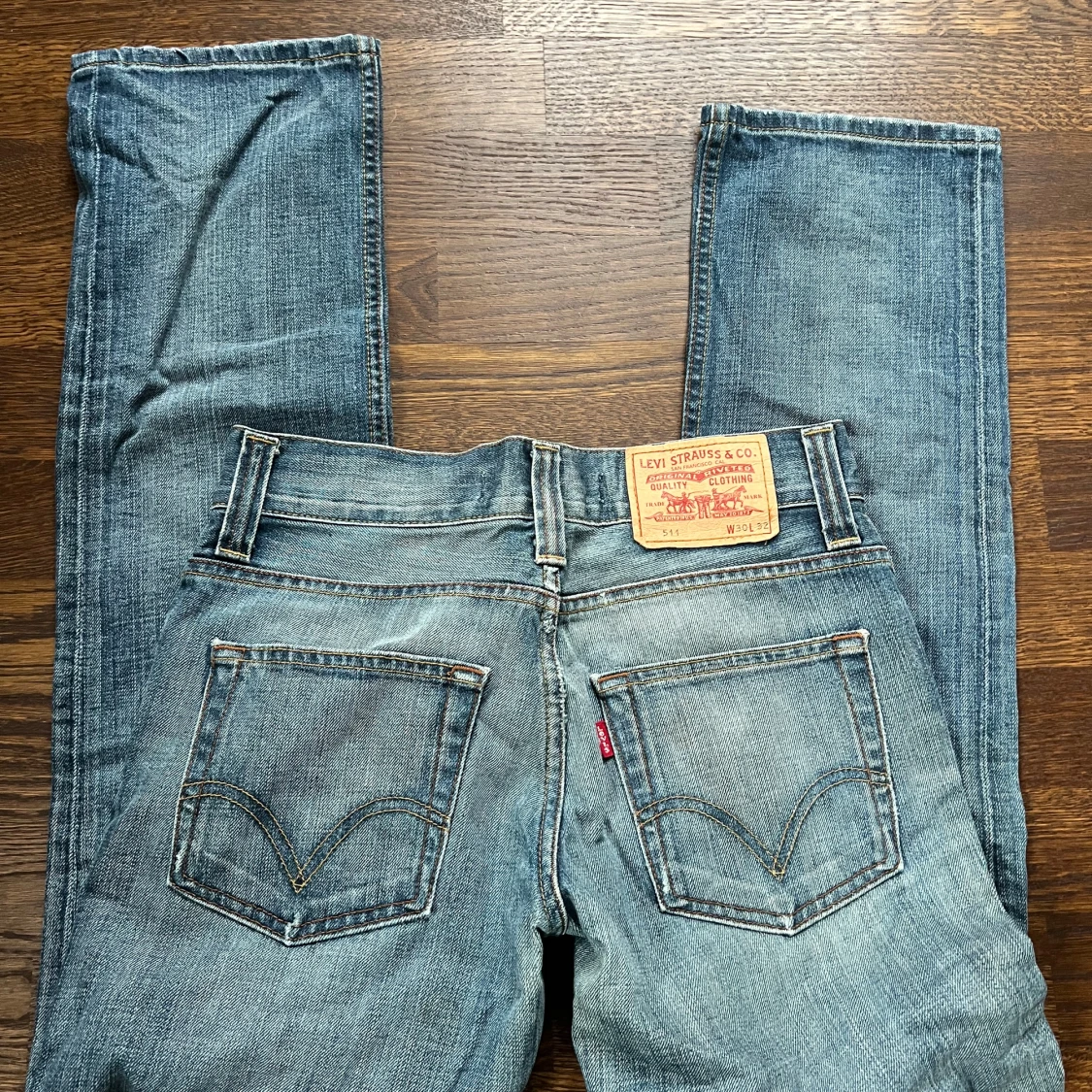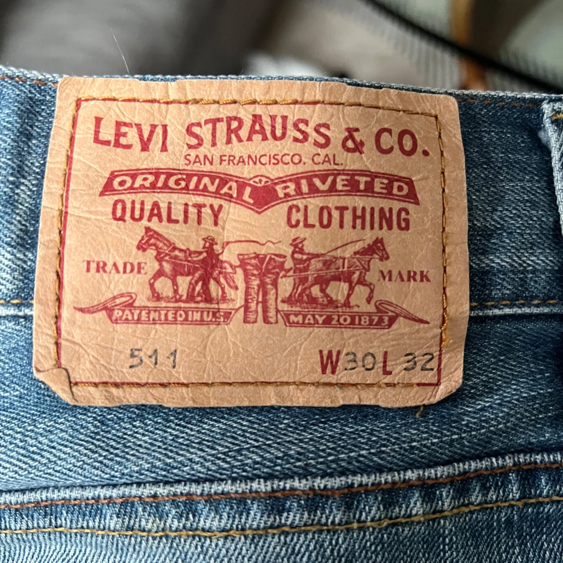 Snygga Levi's 511 jeans i en klassisk blå denim. De har en slim passform och är tillverkade i slitstarkt jeansmaterial. Perfekta för en stilren look.