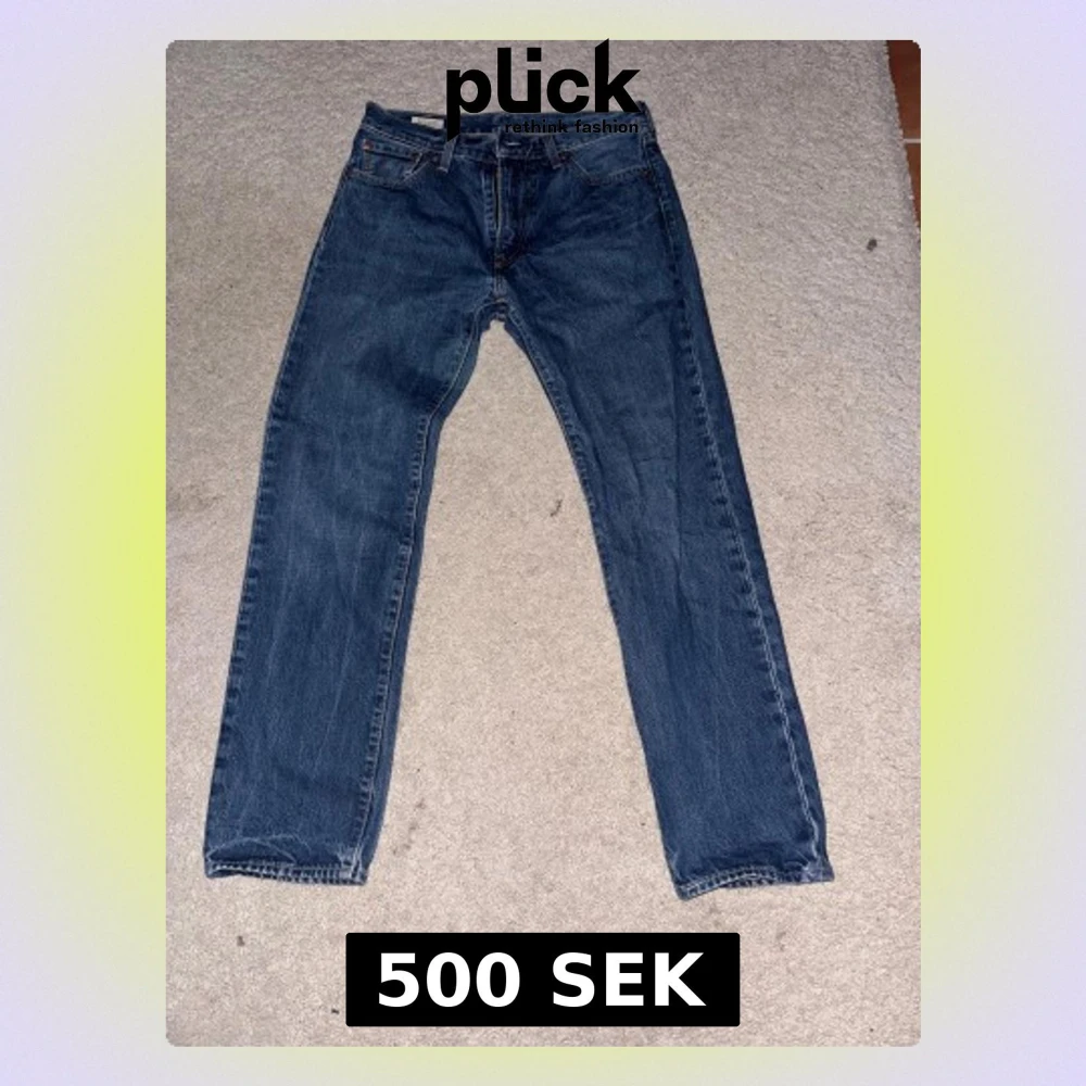 Säljer ett par klassiska Levi's 551 jeans i blå denim. Modellen har rak passform med normal midja och fem fickor. Jeansen har den ikoniska bruna Levi's-lappen bak och snygga kontrastsömmar. Perfekt för dig som gillar tidlös stil och äkta denim.