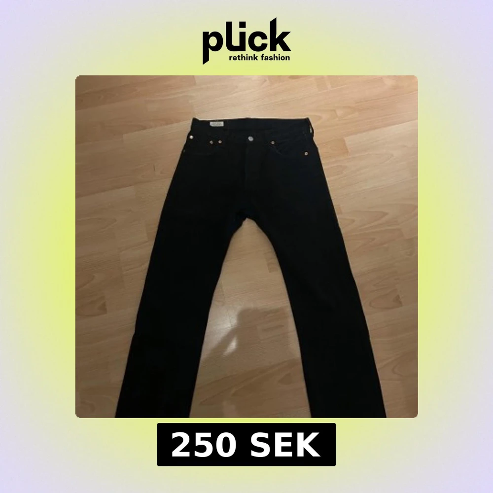 Klassiska svarta Levi's 501 jeans med raka ben och femficksmodell. Jeansen har knappgylf och detaljer i metall. Perfekta för dig som gillar en tidlös och clean look. Tillverkade i slitstarkt jeanstyg.