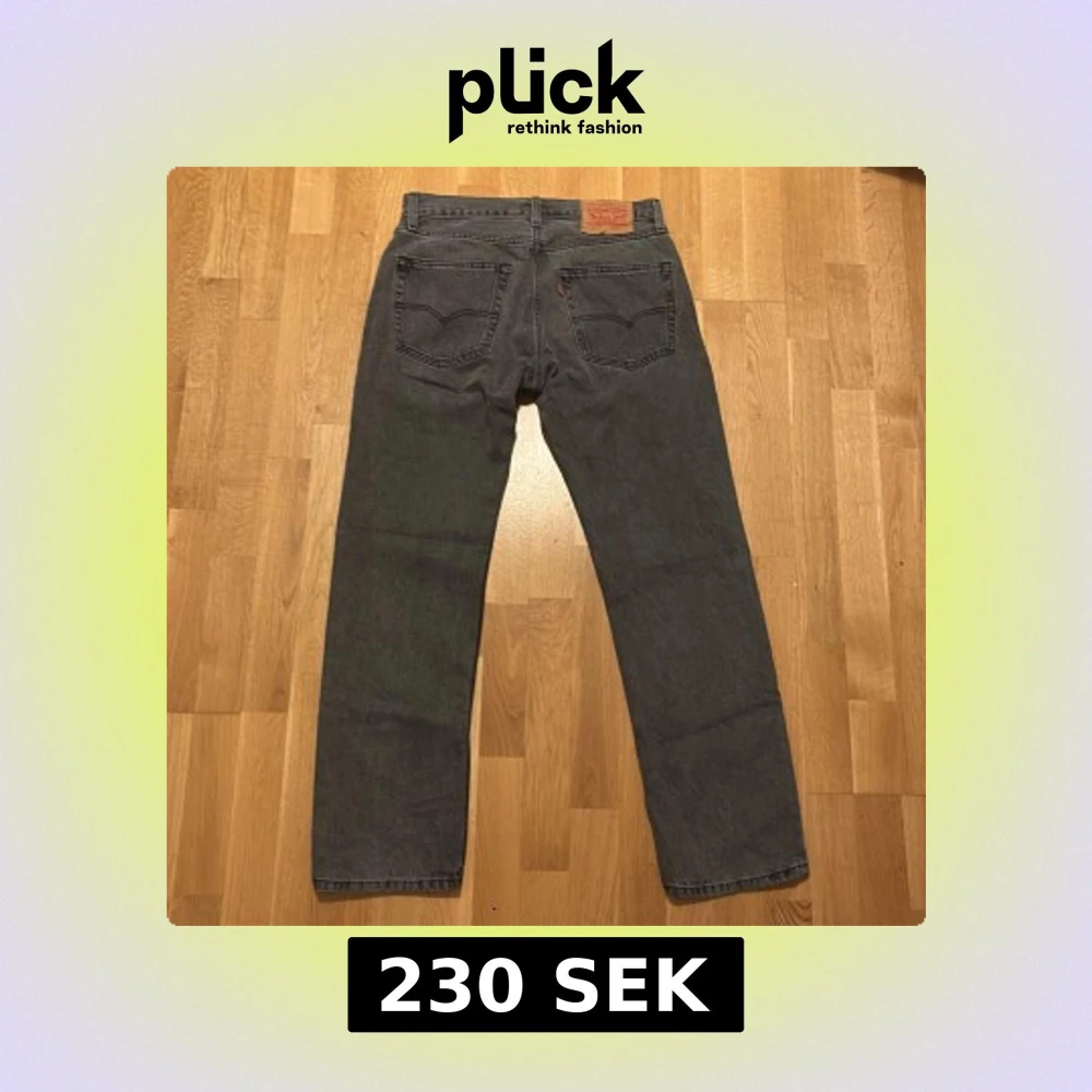Säljer ett par Levi's 551 jeans i snygg mörkgrå tvätt. Klassisk femficksmodell med raka ben och normal passform. Jeansen har dragkedja, knappstängning och den ikoniska röda Levi's-taggen på bakfickan. Perfekt för dig som gillar tidlös streetstil.